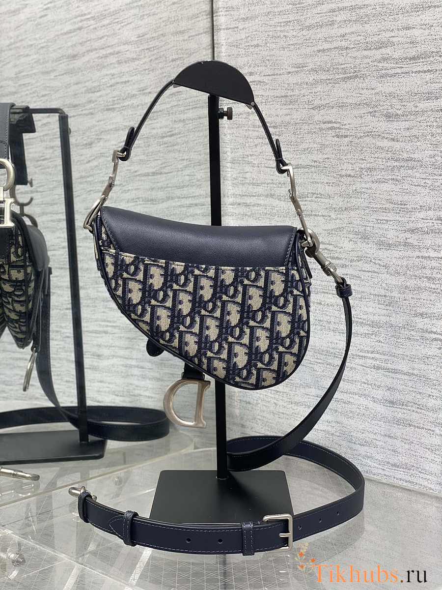 Dior Mini Saddle Bag with Strap Blue Oblique 19x16x5cm