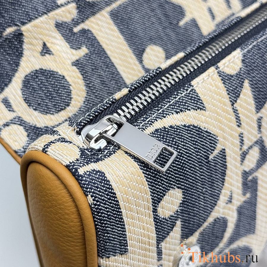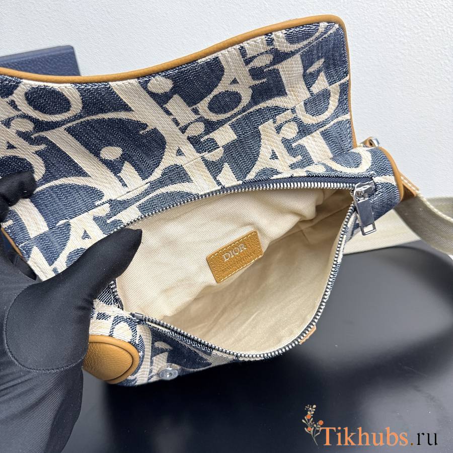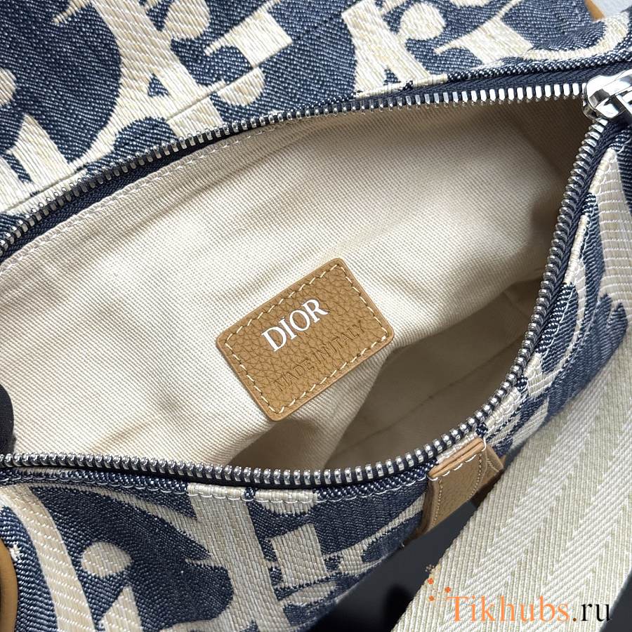 Dior Saddle Bag Blue and Beige Raffia-Effect 27x20x5cm