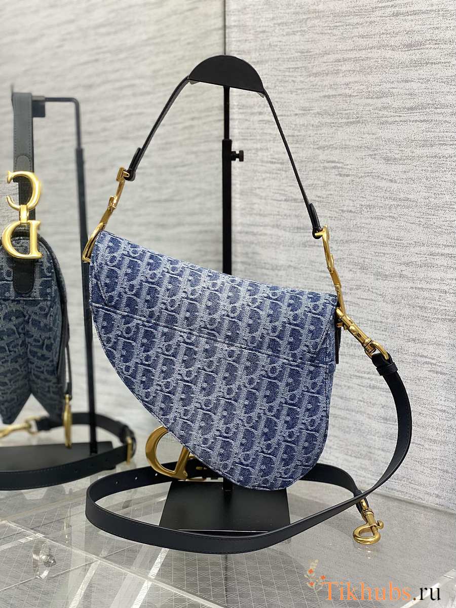 Dior Saddle Bag Strap Blue Denim Oblique 25.5 x 20 x 6.5 cm