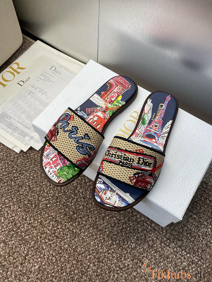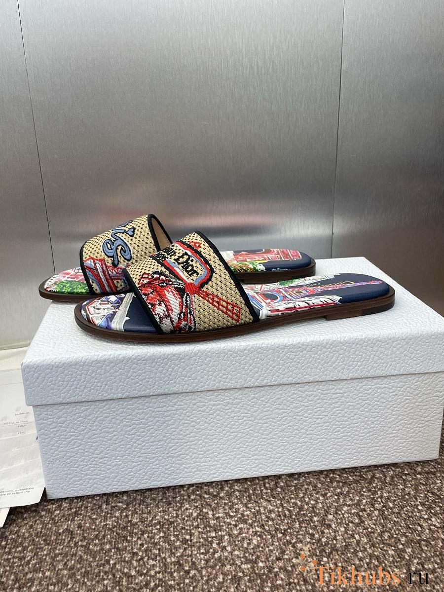 Dior Souvenir Dway Slide Natural Raffia Blue
