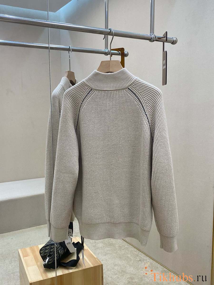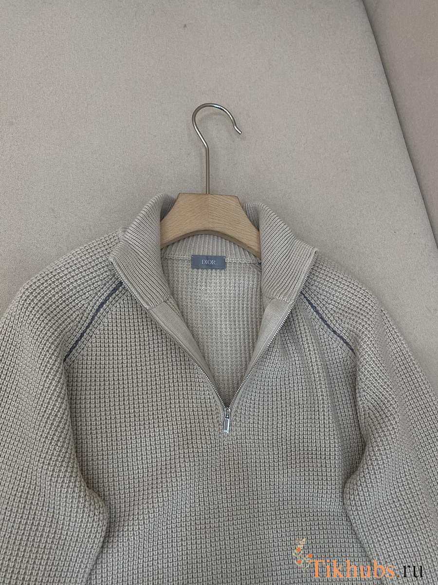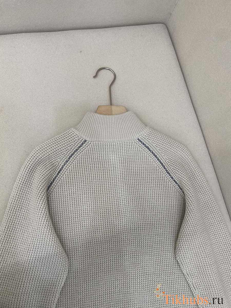 Dior Zip Collar Sweater White Virgin Wool Knit