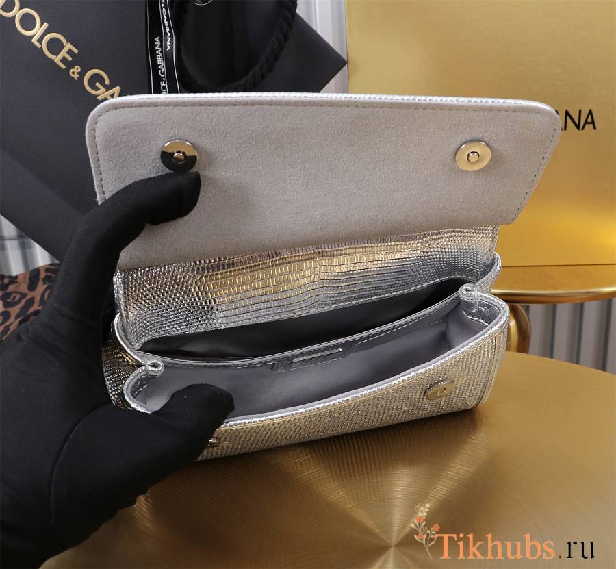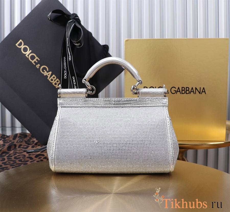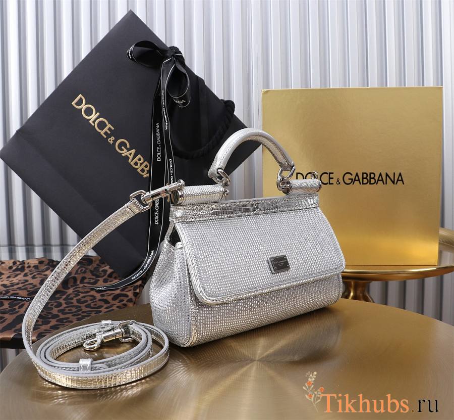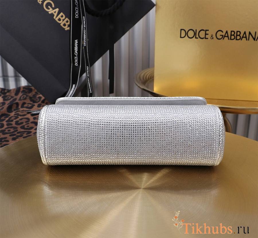 Dolce & Gabbana Small Rhinestone Sicily Tote Bag Silver 18x11x6cm