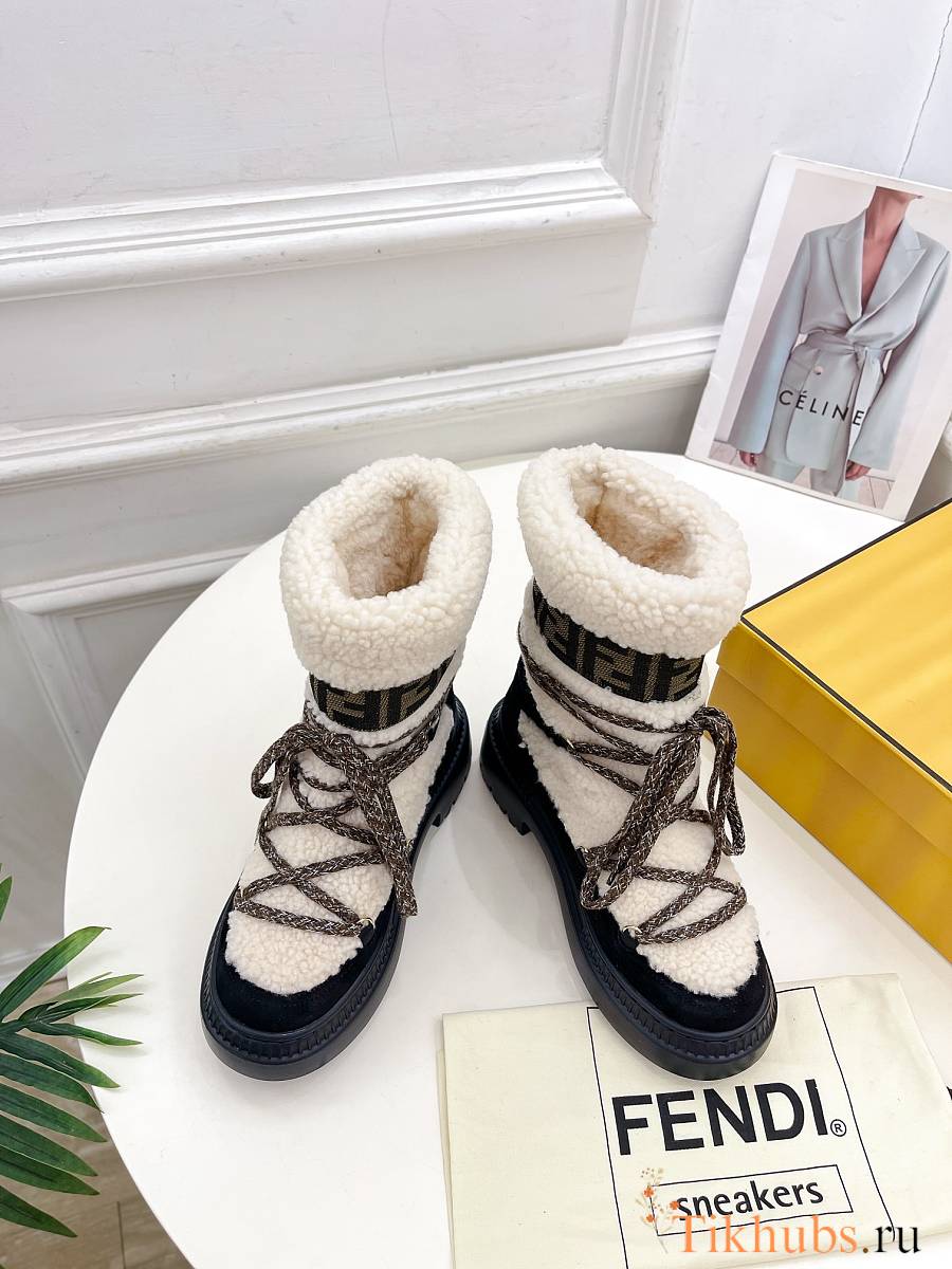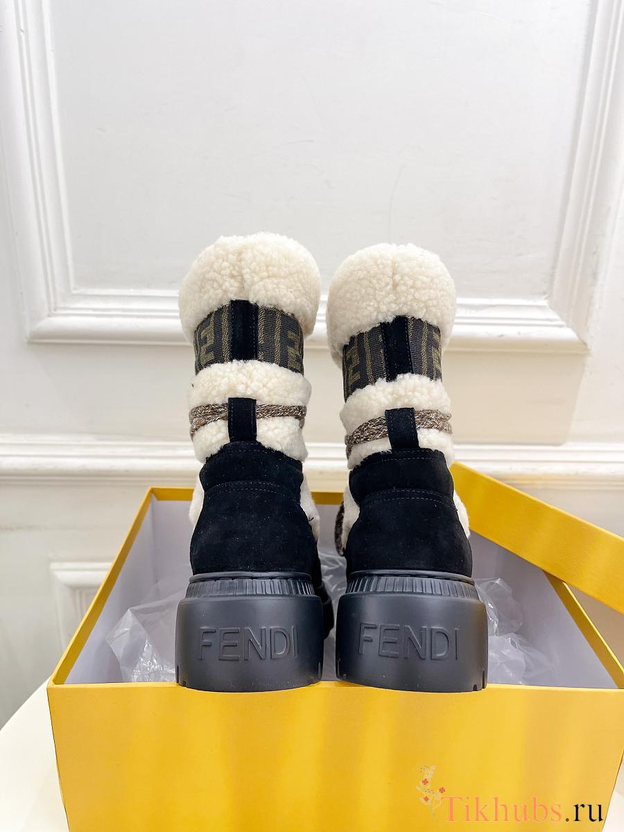 Fendi Apres Chic White Sheepskin Black Suede Boots