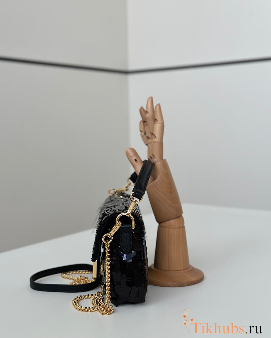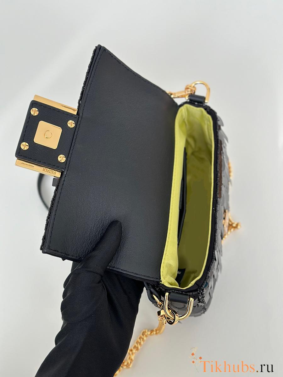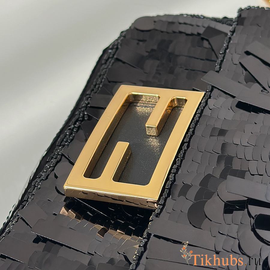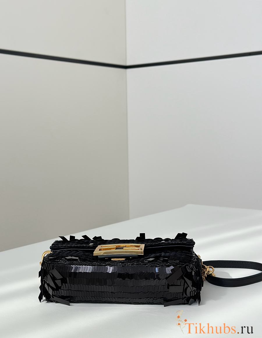 Fendi Baguette Mini Fuchsia Sequin Leather Black Bag 19x11x5cm