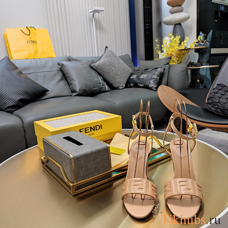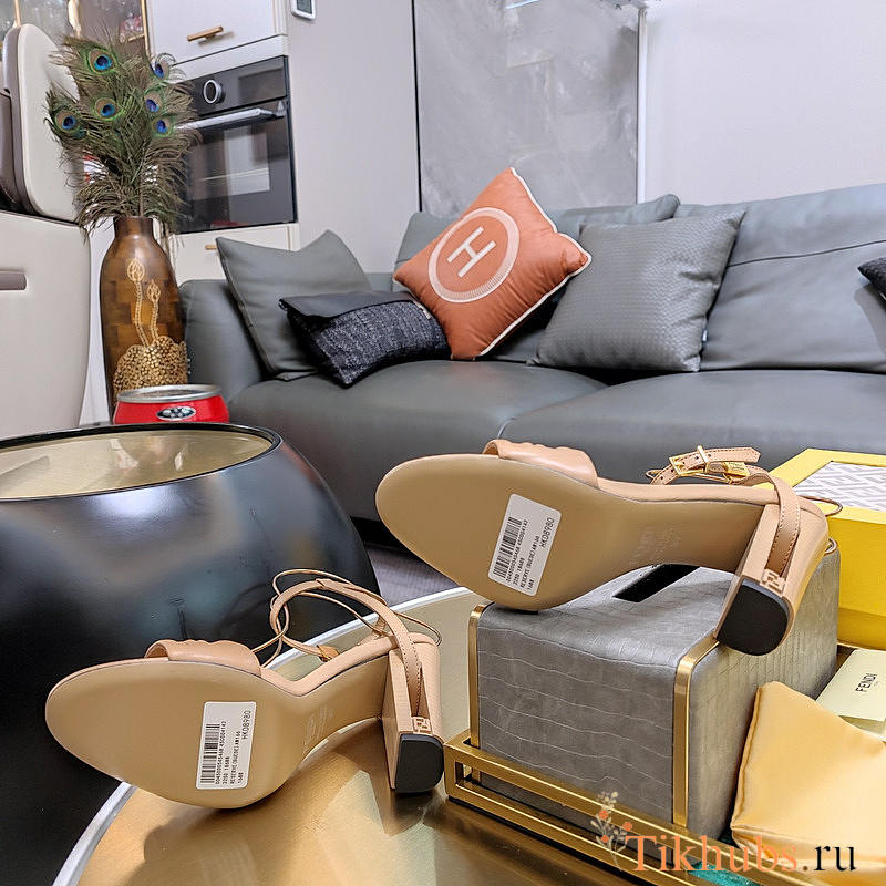 Fendi Delfina Beige FF Leather Sandals Heel 10cm