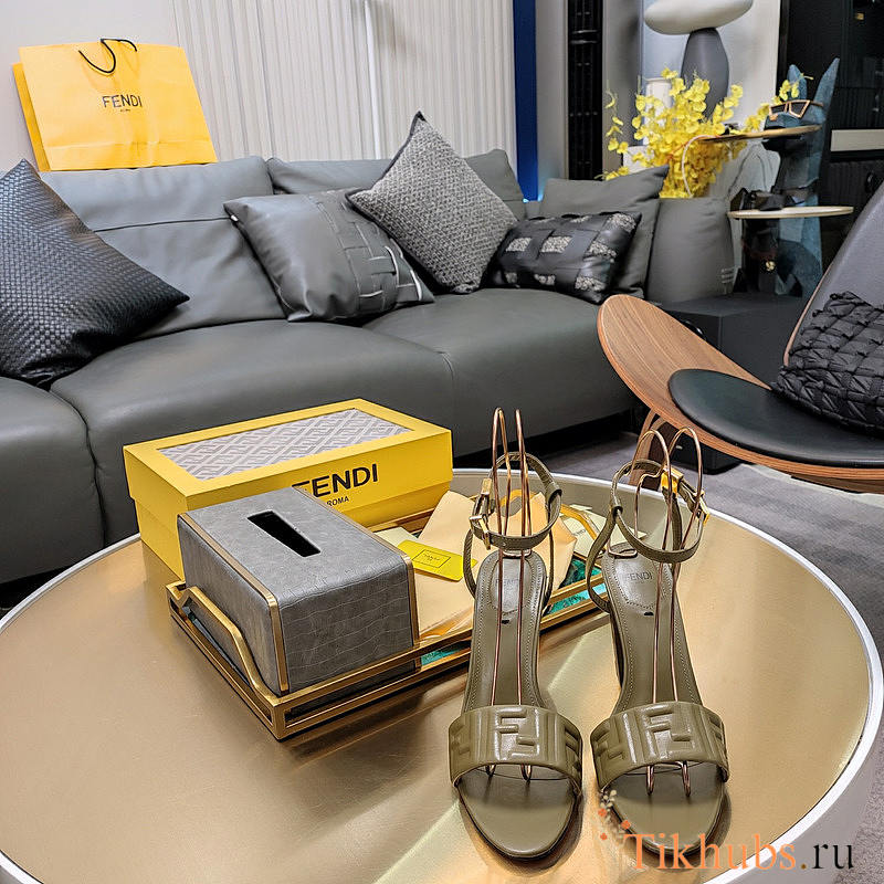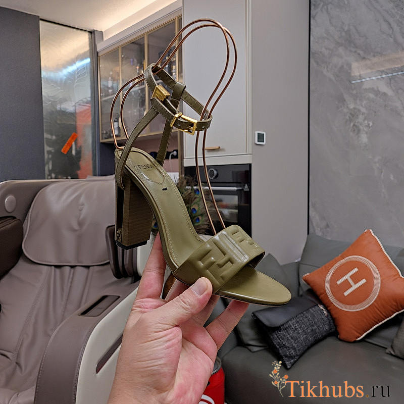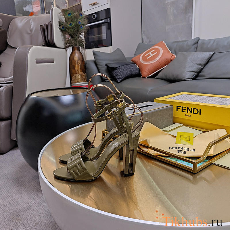 Fendi Delfina Green FF Leather Sandals Heel 10cm