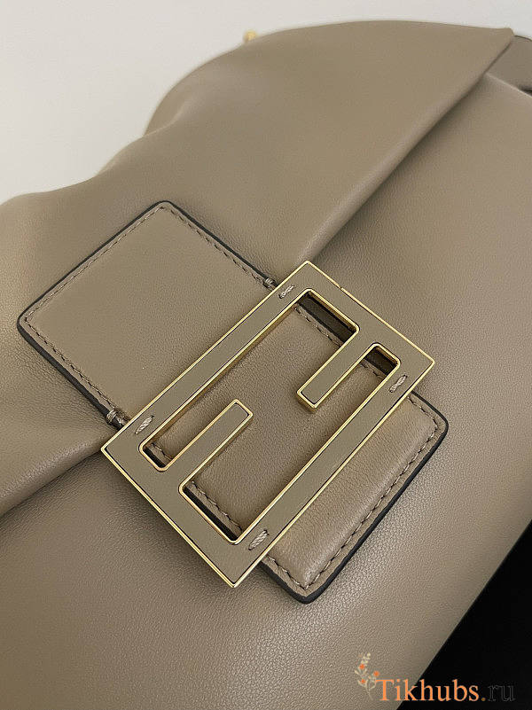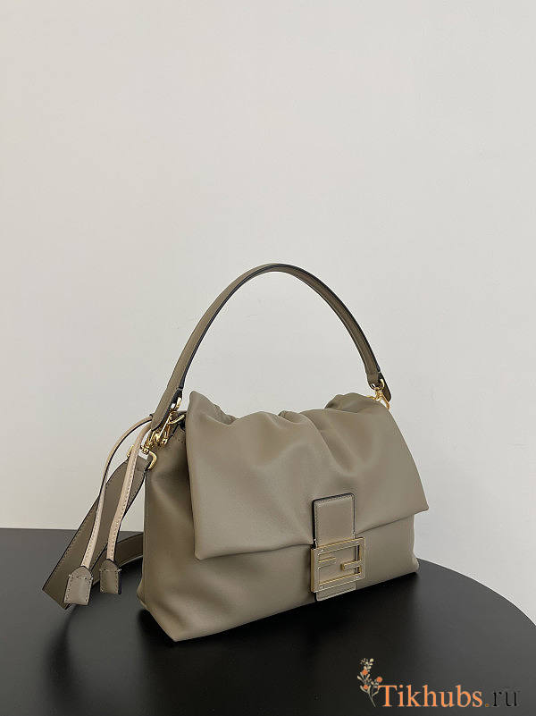 Fendi Mamma Baguette Medium Grey Leather Bag 26.5x18x8.5cm