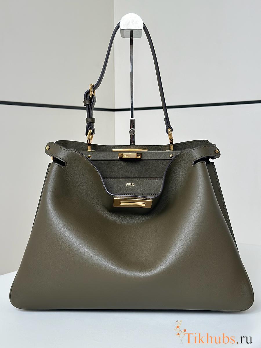 Fendi Peekaboo Soft Large Green Leather Bag 40.5x13x28cm