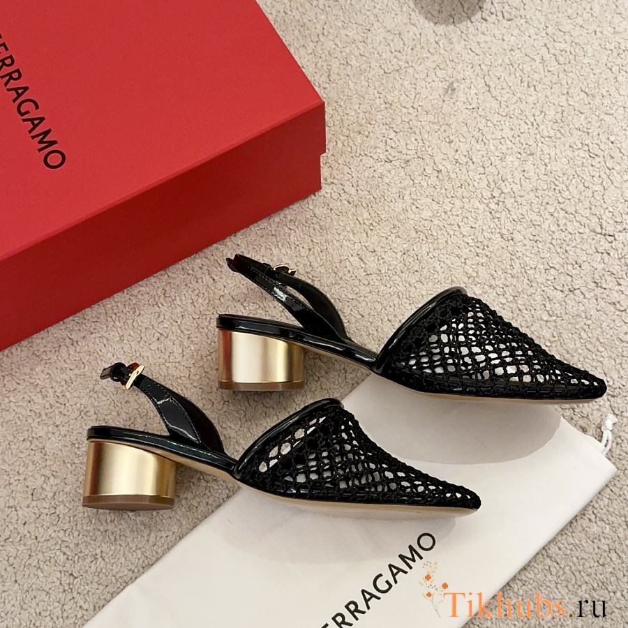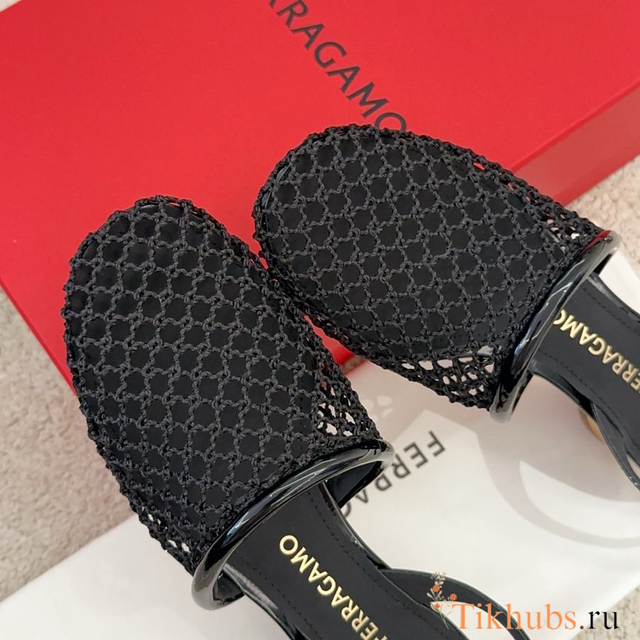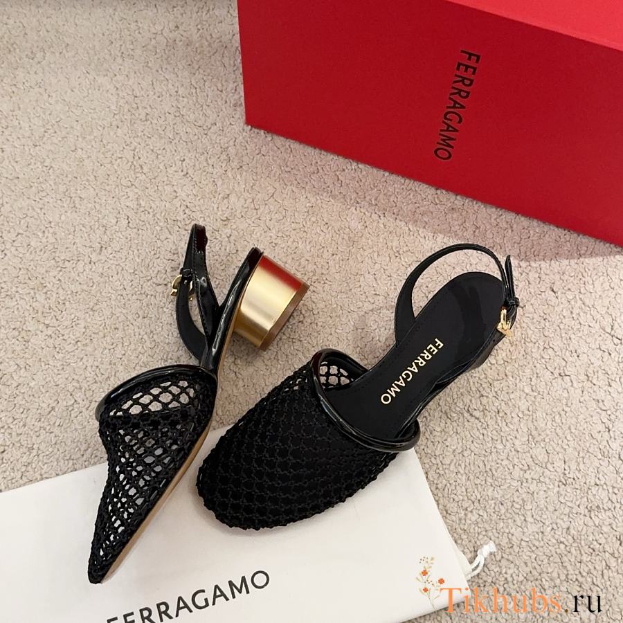 Ferragamo Mesh Slingback Black 4cm