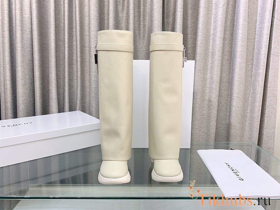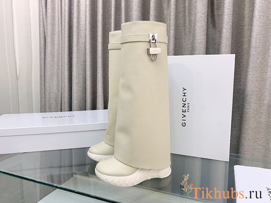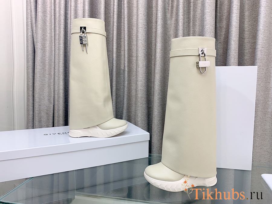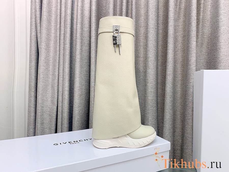 Givenchy Shark Lock Biker Long Ankle Boot Grain Leather White