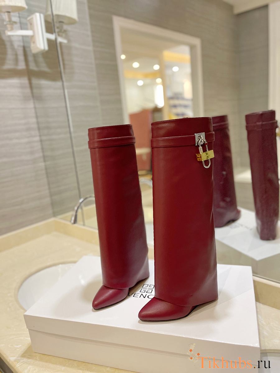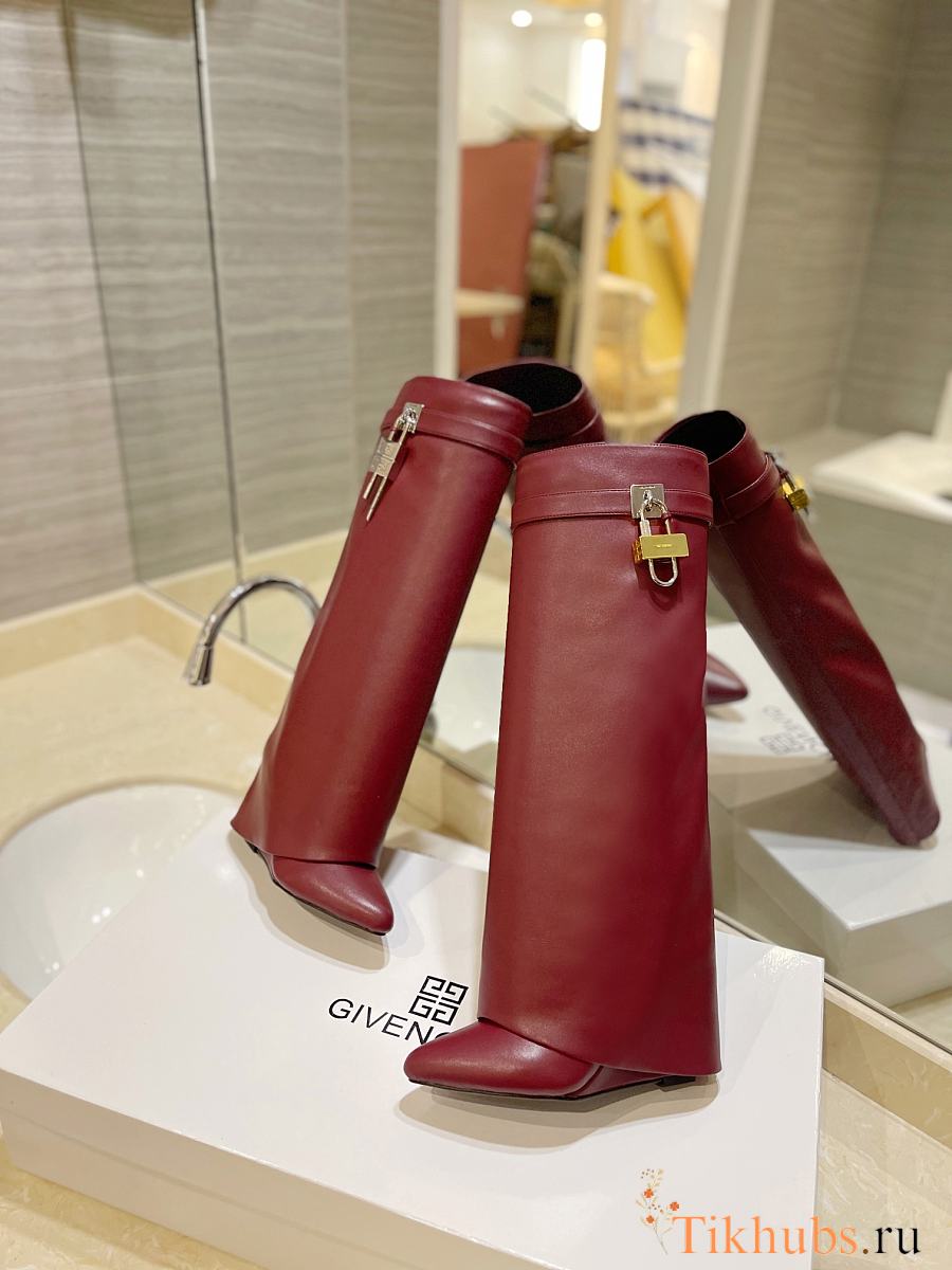 Givenchy Shark Lock Leather Knee-high Boots Red Wine