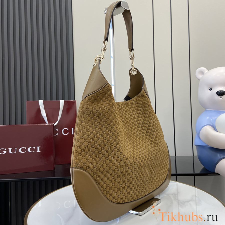 Gucci B Medium Shoulder Bag Brown Suede 49x46x4cm
