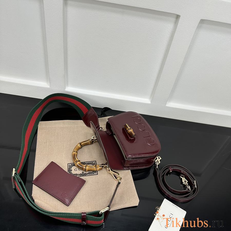 Gucci Bamboo 1947 Mini Top Handle Bag Red Wine 17x12x7.5cm