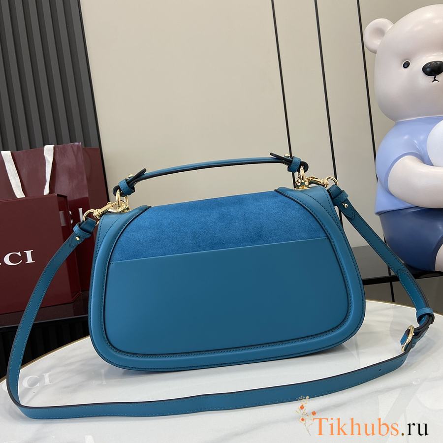 Gucci Blondie Medium Top Handle Bag Blue Suede 32x17x10cm