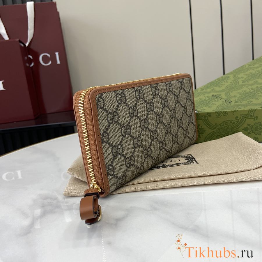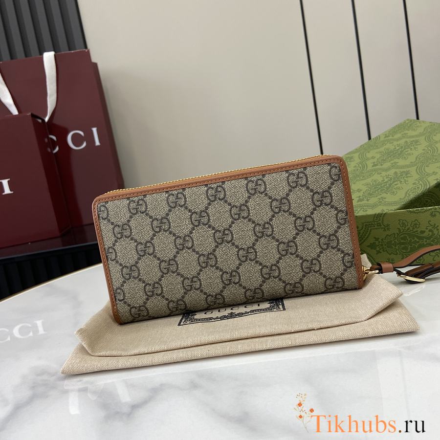 Gucci Brown GG Supreme Zip Long Wallet 19x10x2.5cm