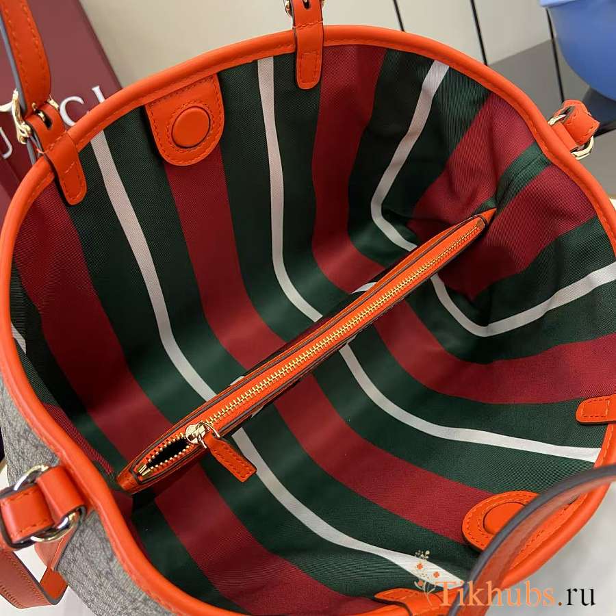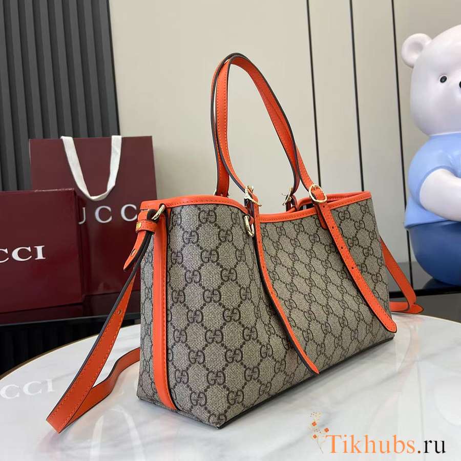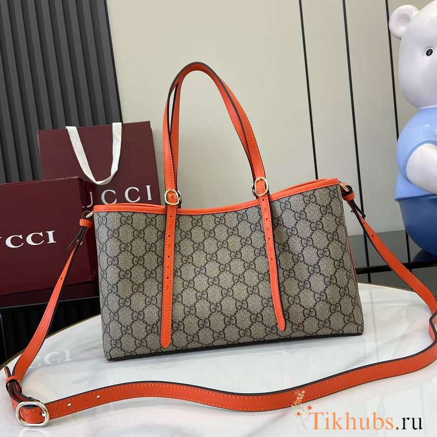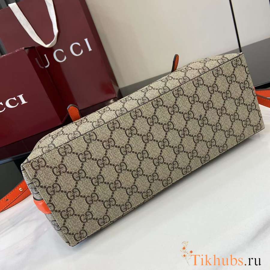 Gucci Emblem Medium Beige Orange Tote Bag 31x18.5x11.5cm
