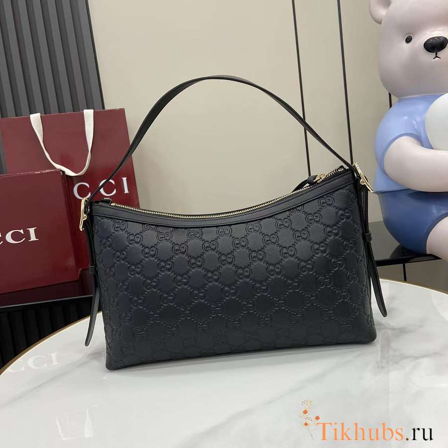 Gucci Emblem Medium Shoulder Bag Black 30x19x11cm
