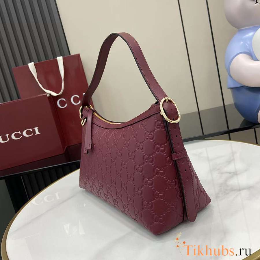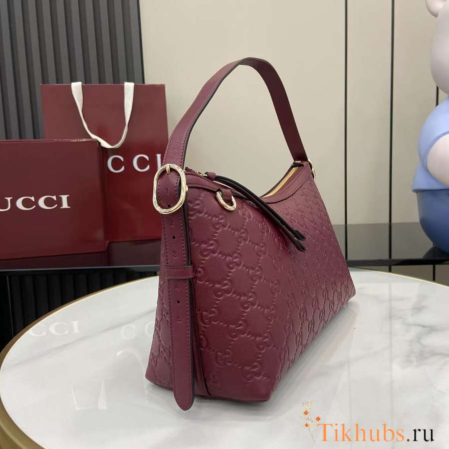 Gucci Emblem Medium Shoulder Bag Red Wine 30x19x11cm