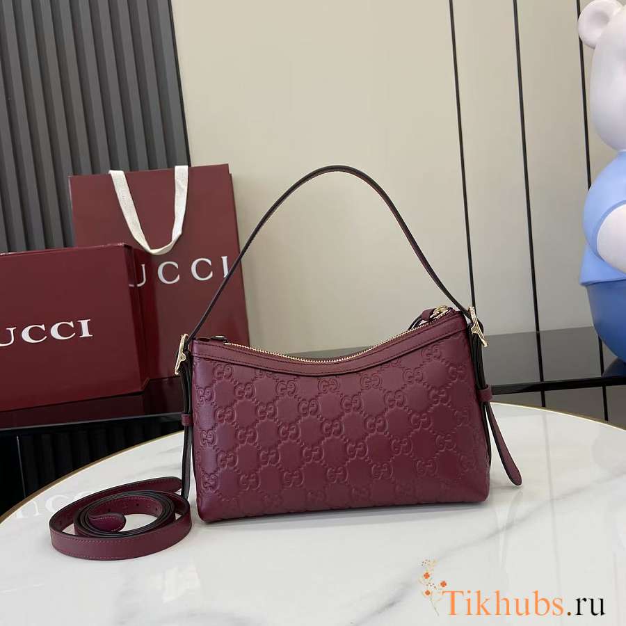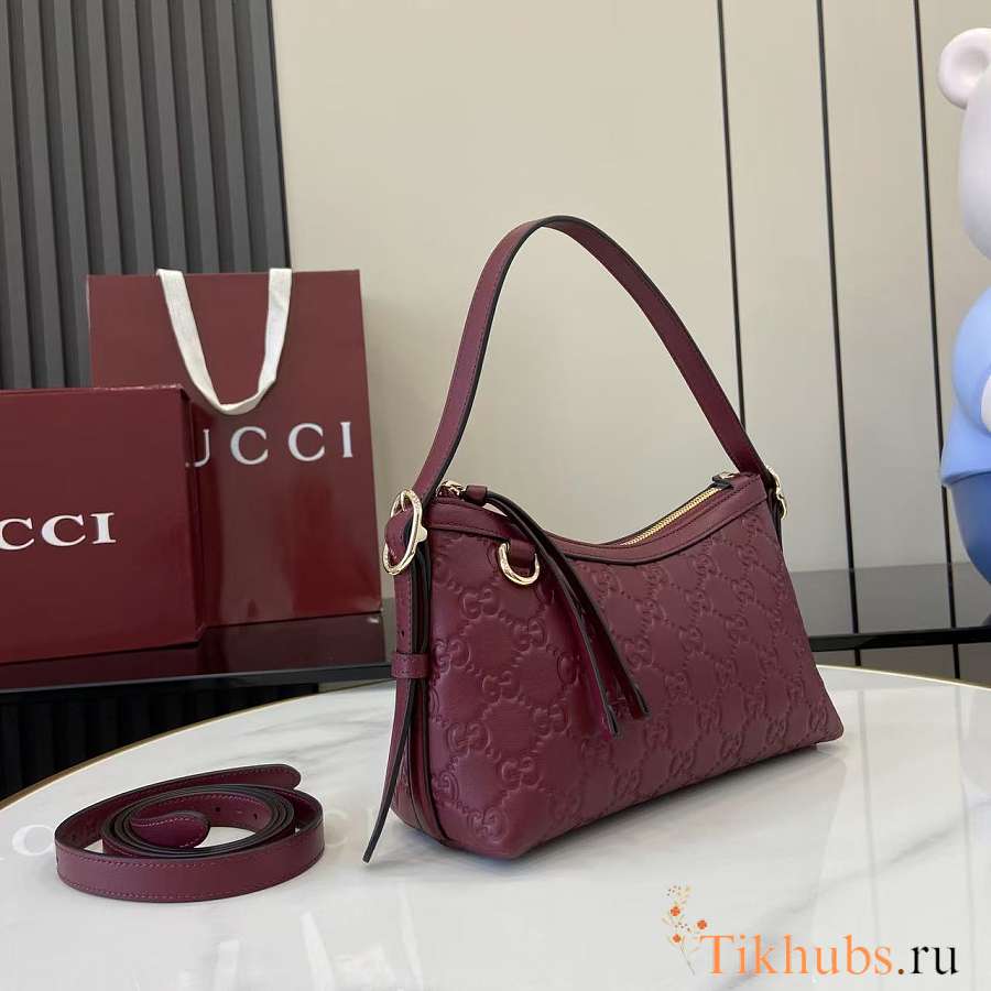 Gucci GG Emblem Small Shoulder Bag Red 22x14x8cm