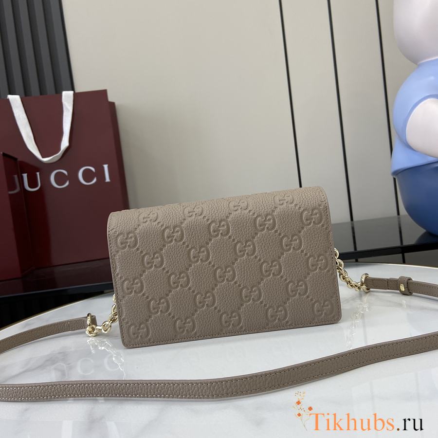 Gucci GG Emblem Super Mini Shoulder Bag Taupe 20x12.5x4.5cm