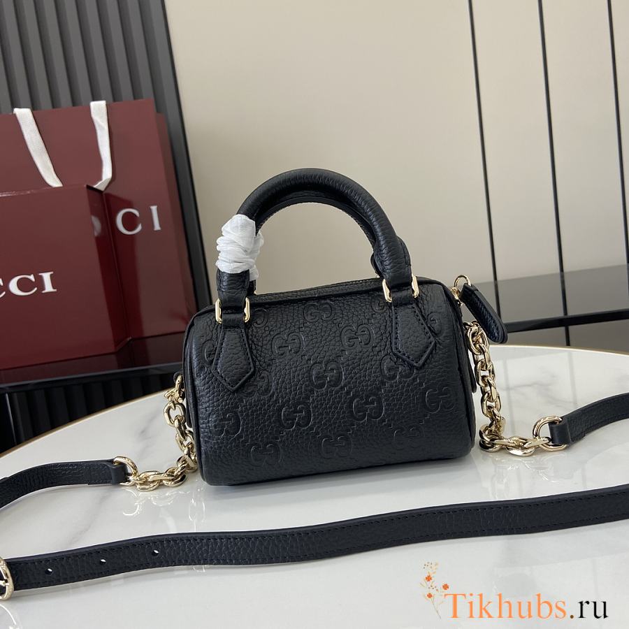 Gucci GG Emblem Super Mini Top Handle Bag Black 16.5x10x8cm