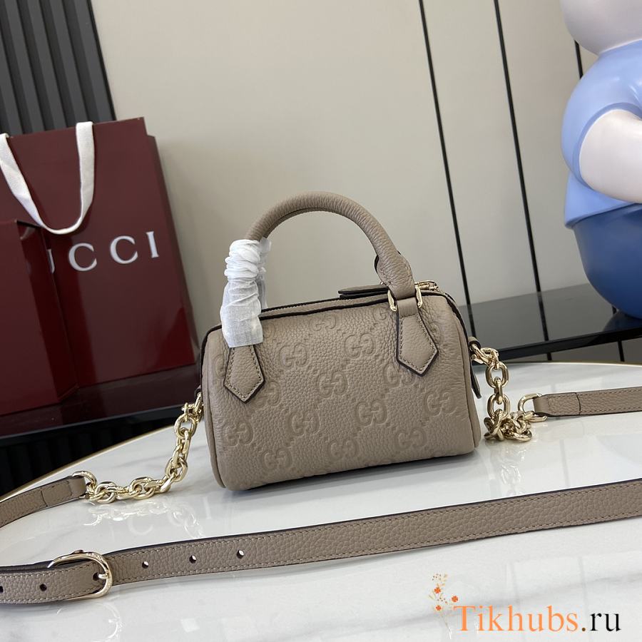 Gucci GG Emblem Super Mini Top Handle Bag Taupe 16.5x10x8cm