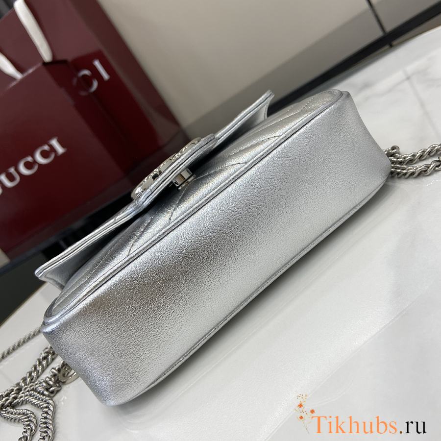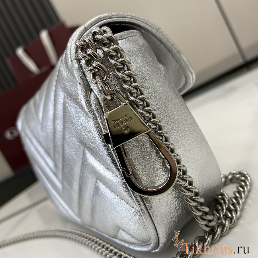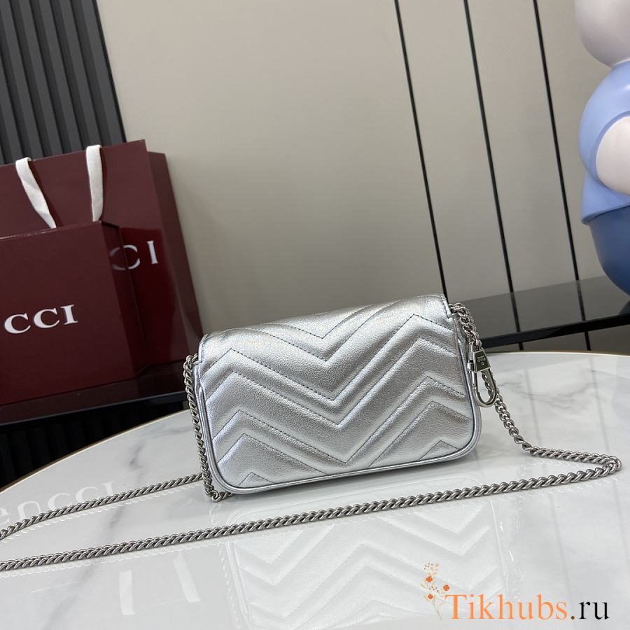 Gucci GG Marmont Matelasse Super Mini Bag Silver 16.5x10x5cm