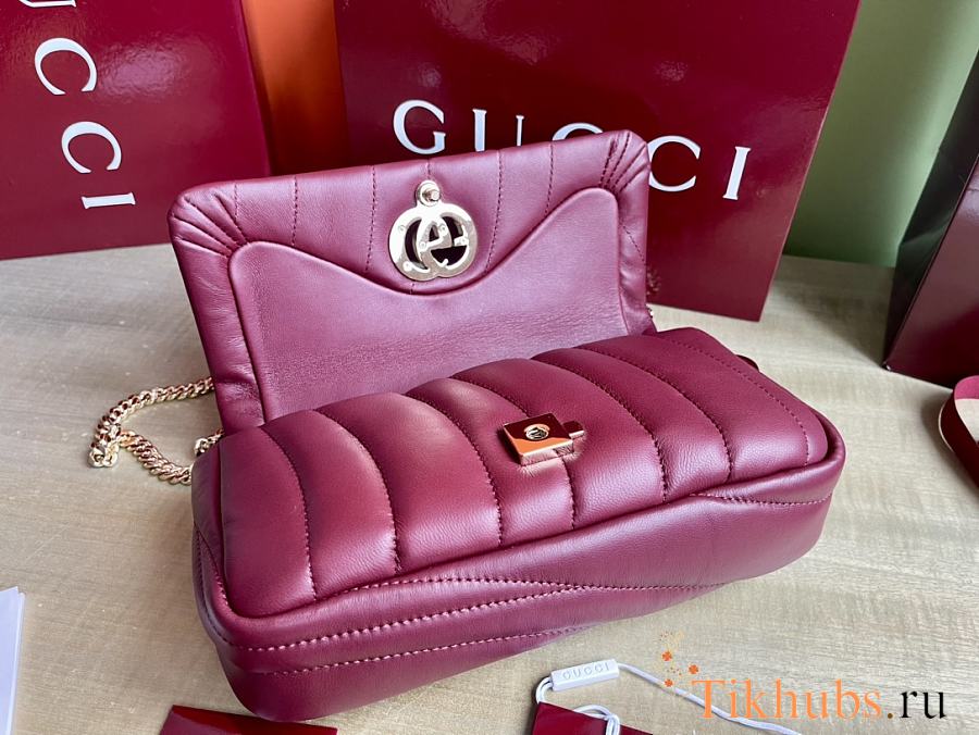 Gucci GG Marmont mini top handle bag in a burgundy or bordeaux color size 21cm