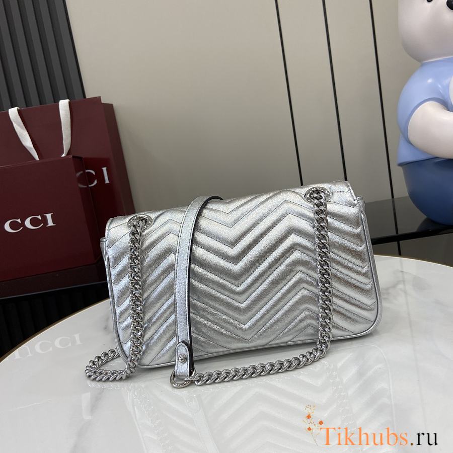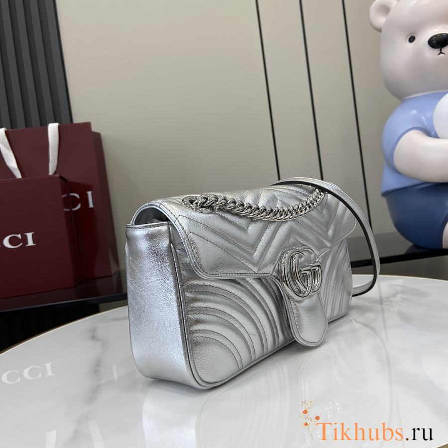 Gucci GG Marmont Small Silver Shoulder Bag 26x15x7cm