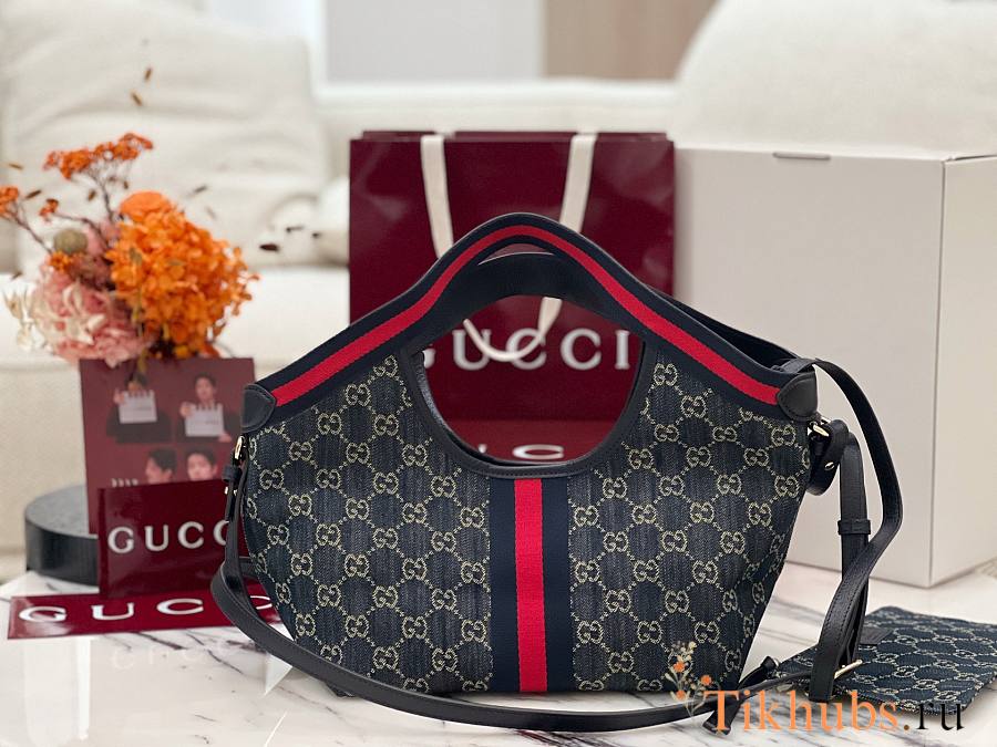 Gucci Giglio Small Tote Bag Blue 25x20x15cm