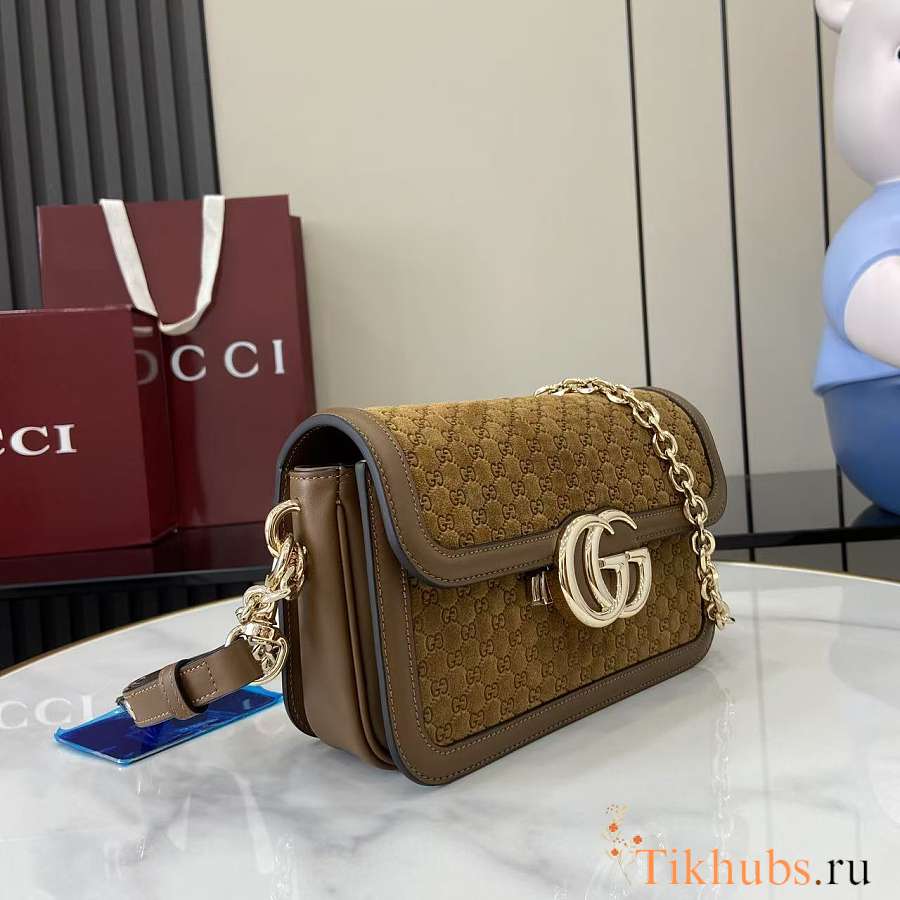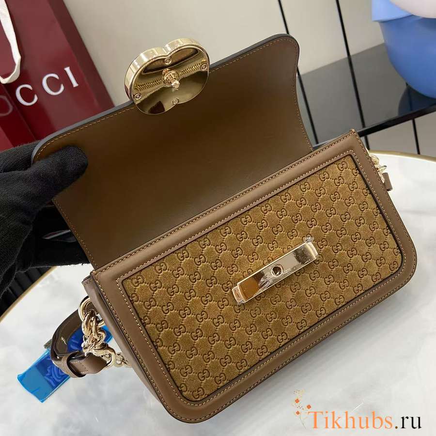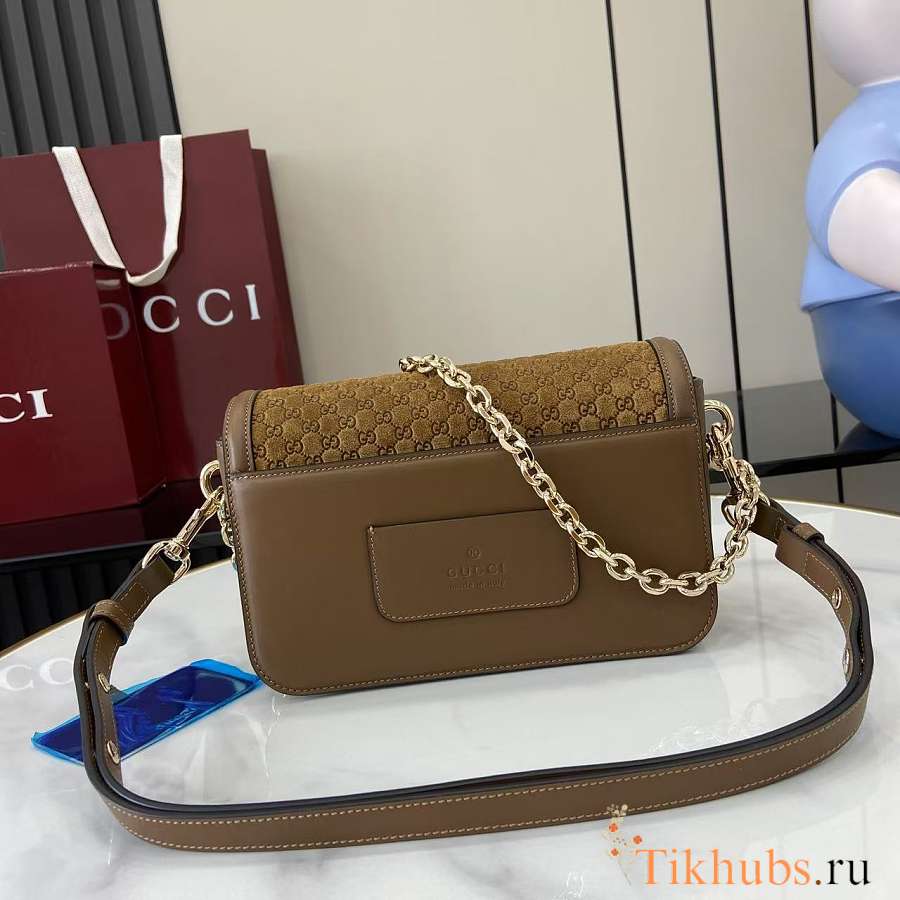 Gucci Go Small Shoulder Bag Brown Suede 21.5x14x9cm