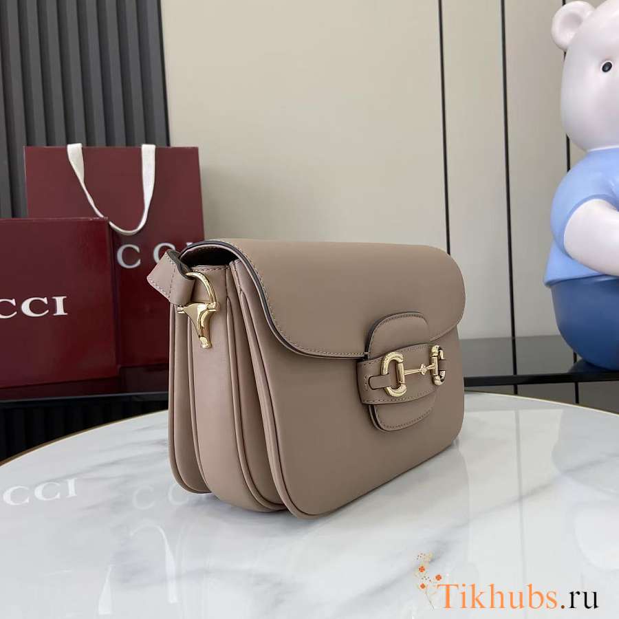 Gucci Horsebit 1955 Soft Medium Shoulder Bag Taupe 26x17.5x10cm