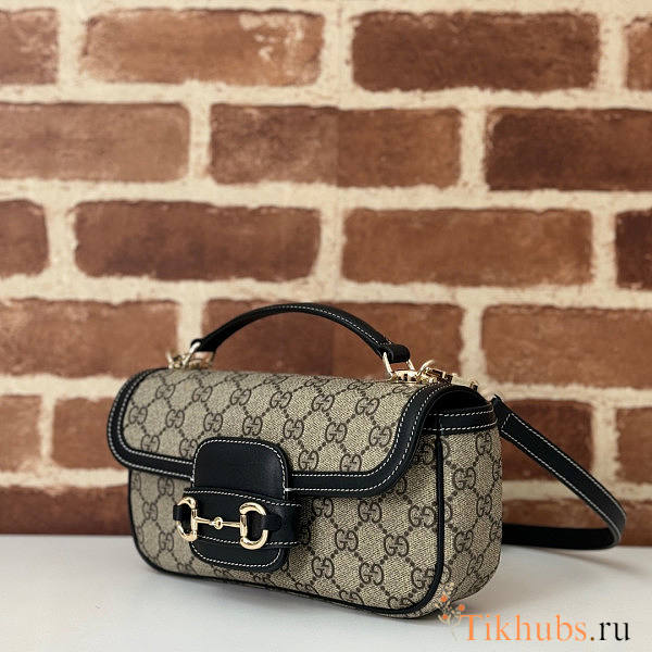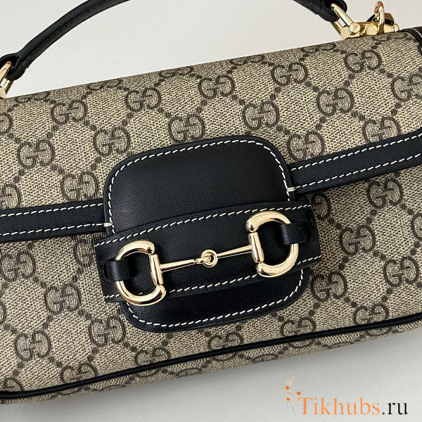 Gucci Horsebit 1955 Soft Small Top Handle Bag Black Beige 22.5x12.5x5.5cm