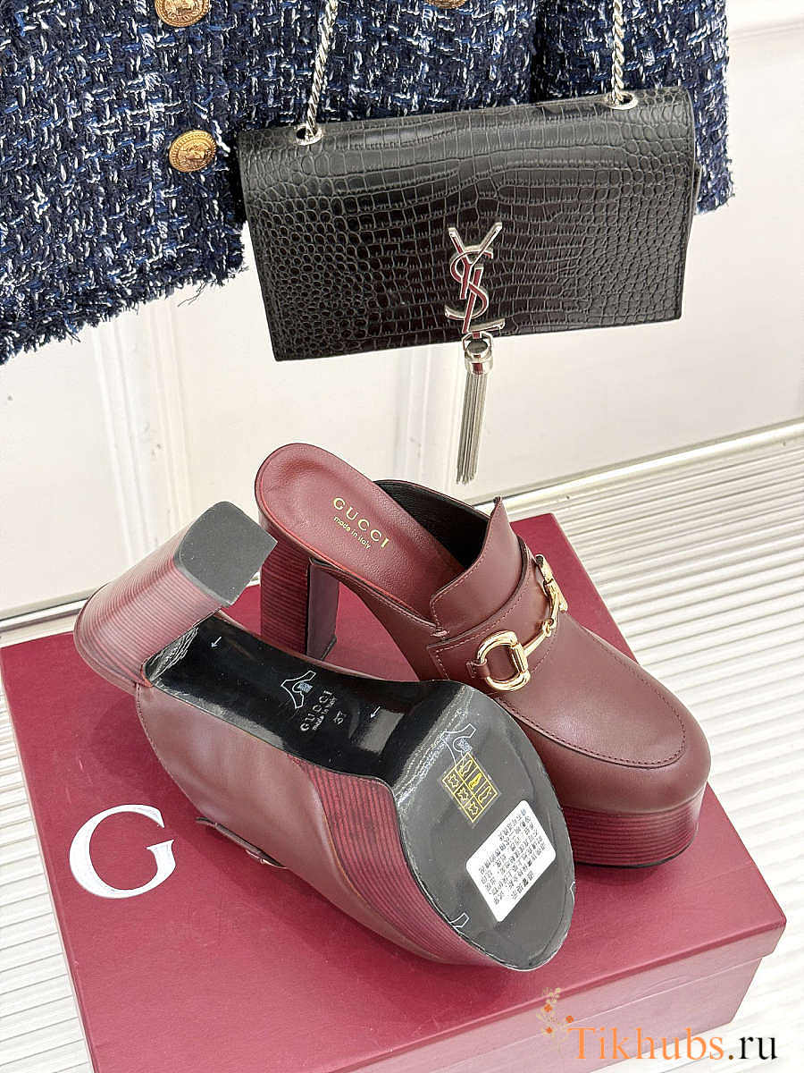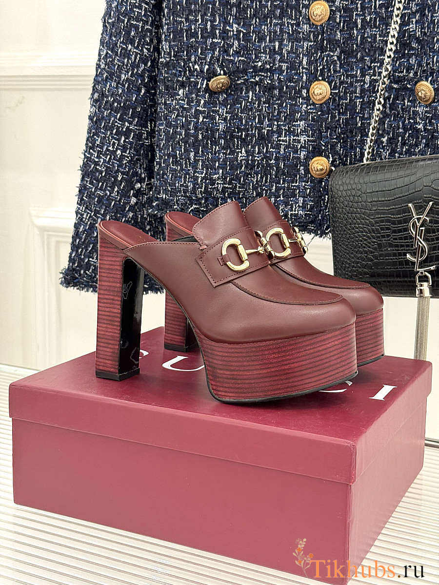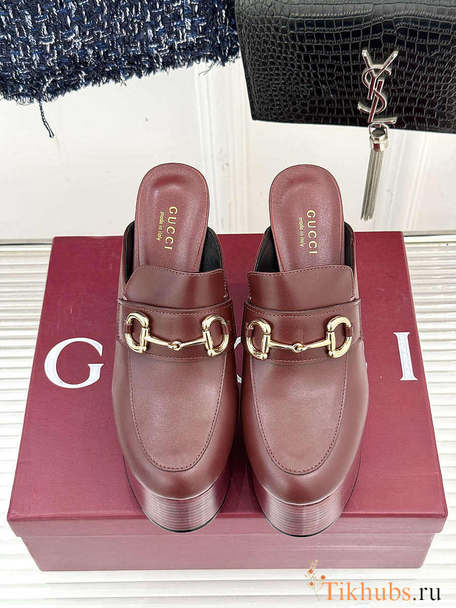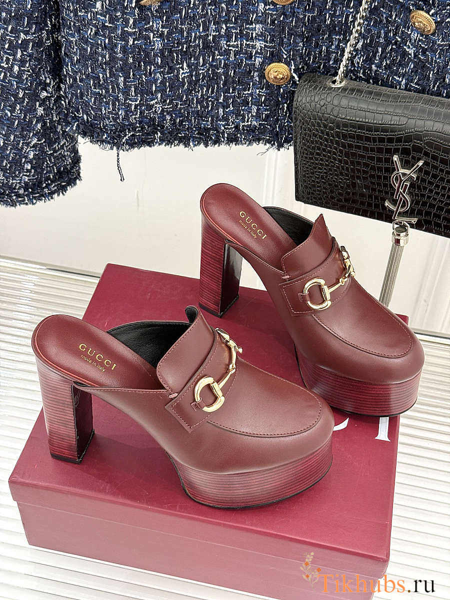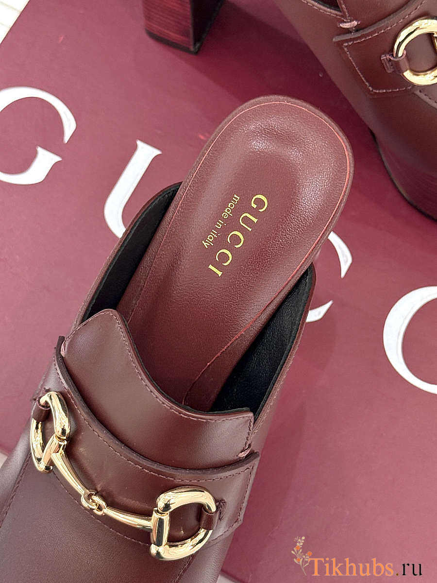 Gucci Horsebit platform mules in a burgundy color 13cm