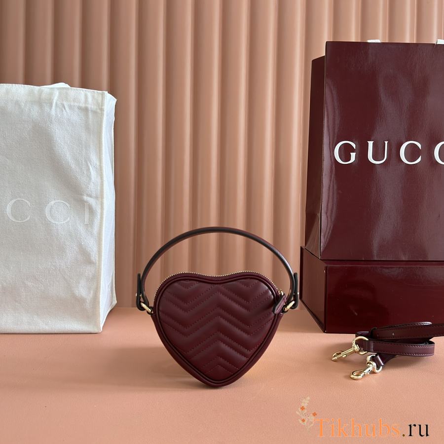 Gucci Marmont Heart Shape Bag Red Wine 13.5x11.5x2.5cm