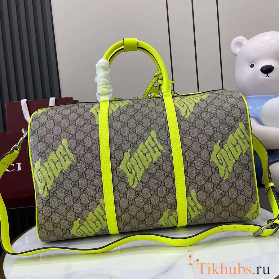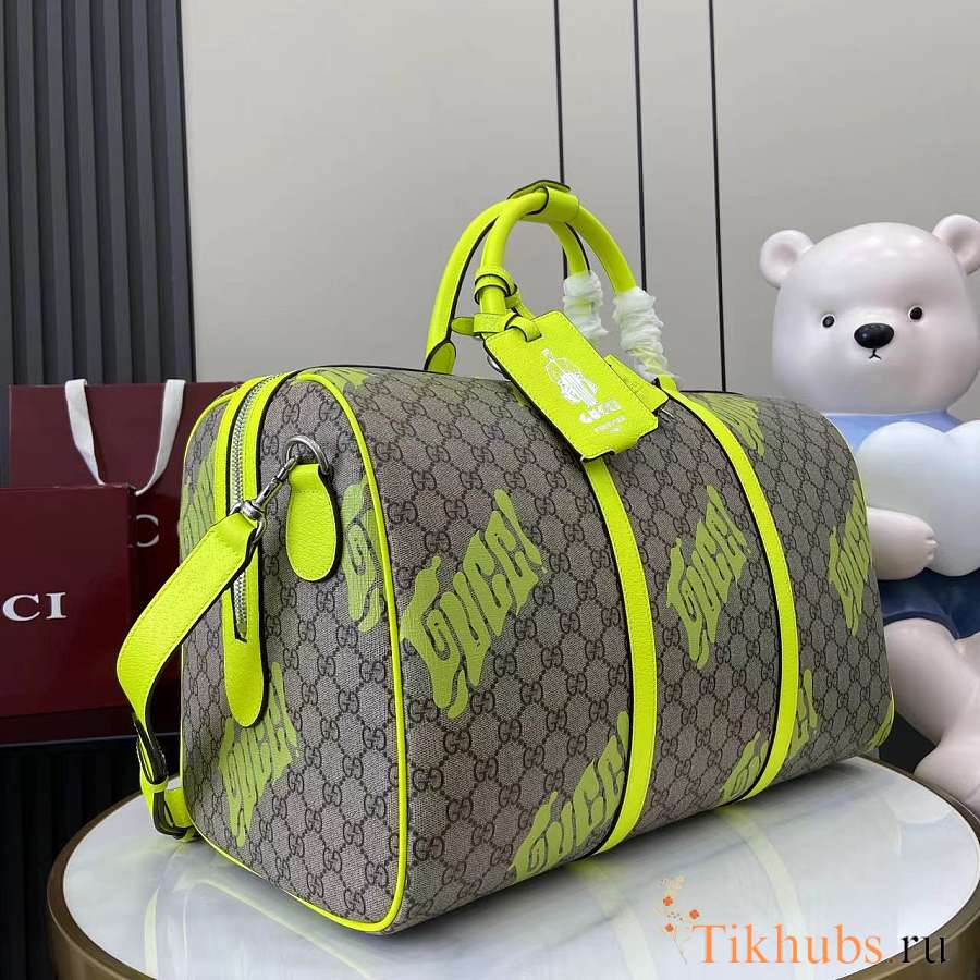 Gucci Medium Duffle Bag Print Beige Green 44x29x23cm