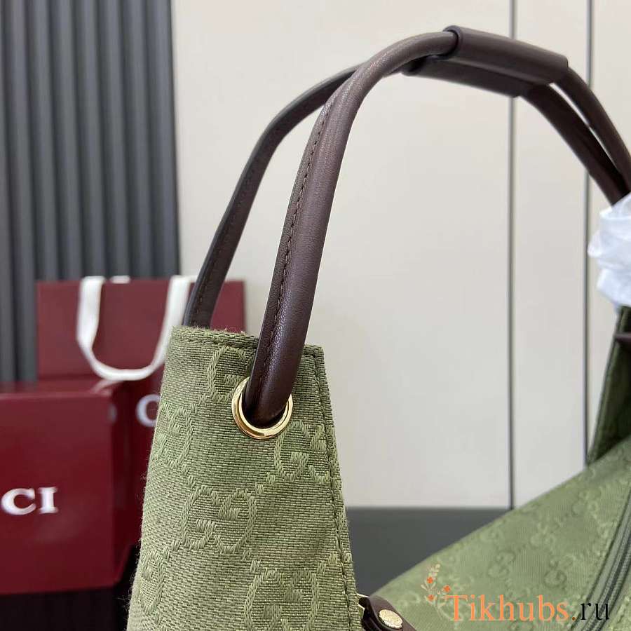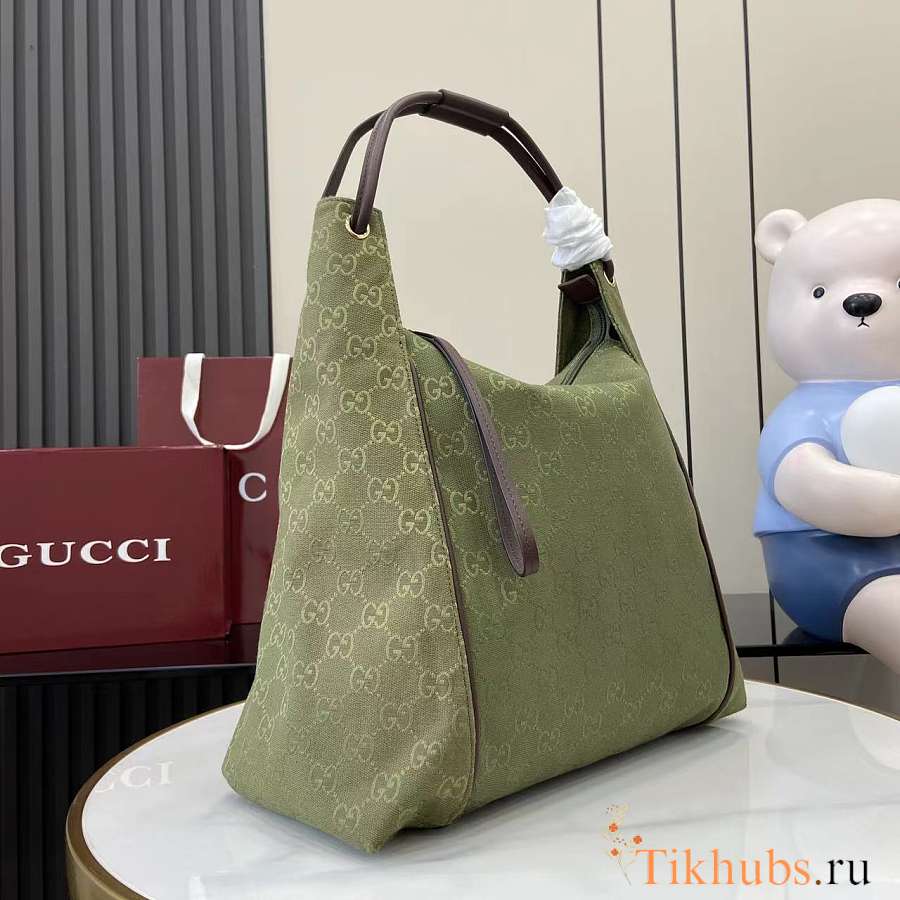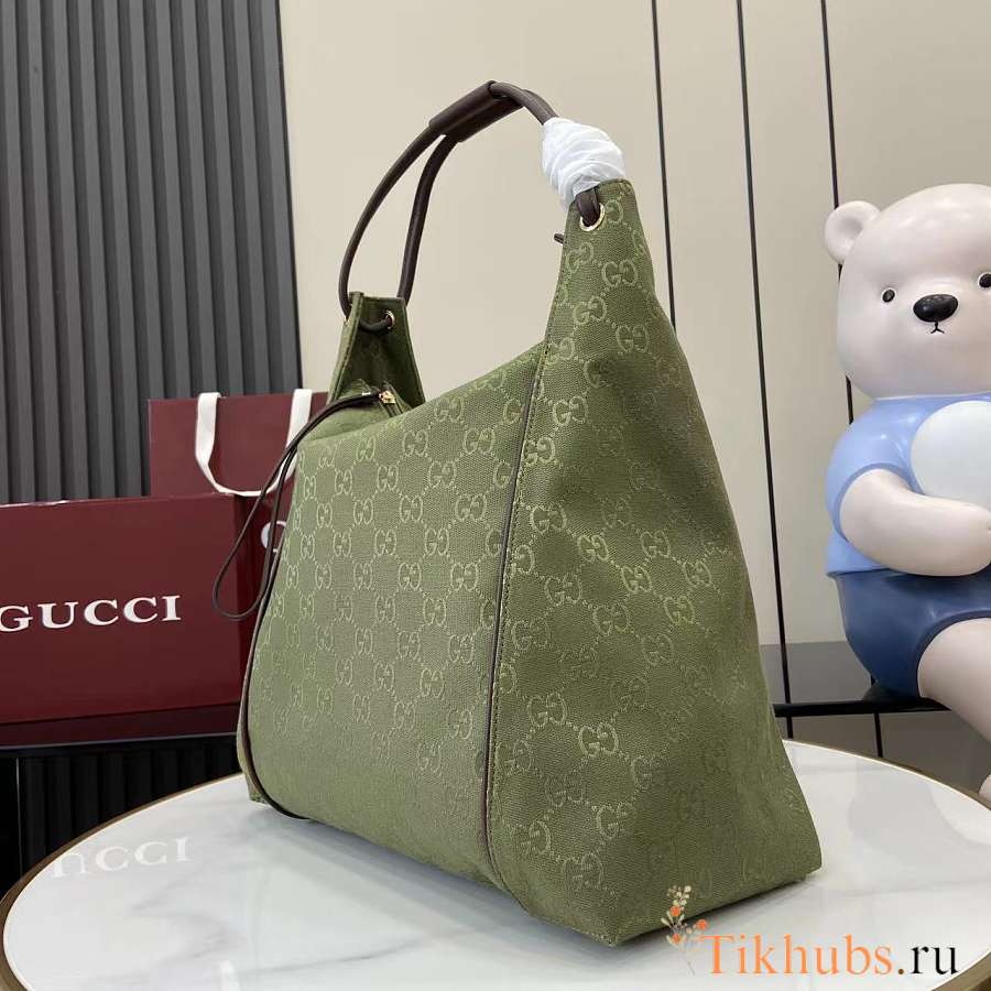 Gucci Nylon Leather Hobo Shoulder Bag Green 36x36x10cm