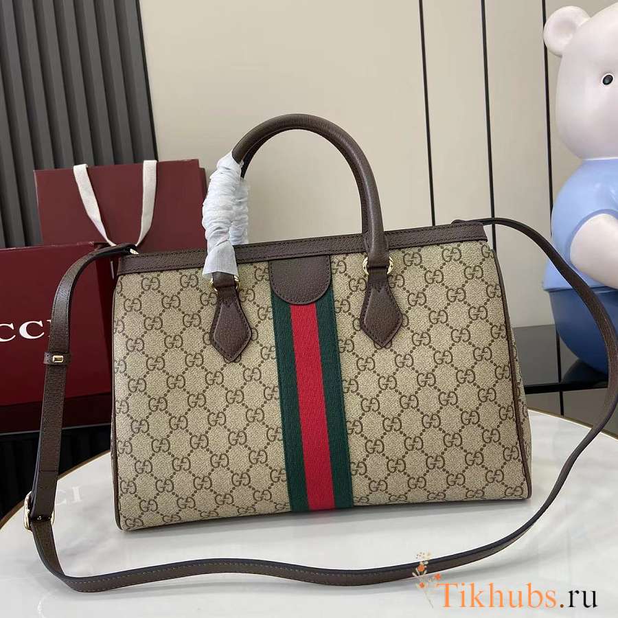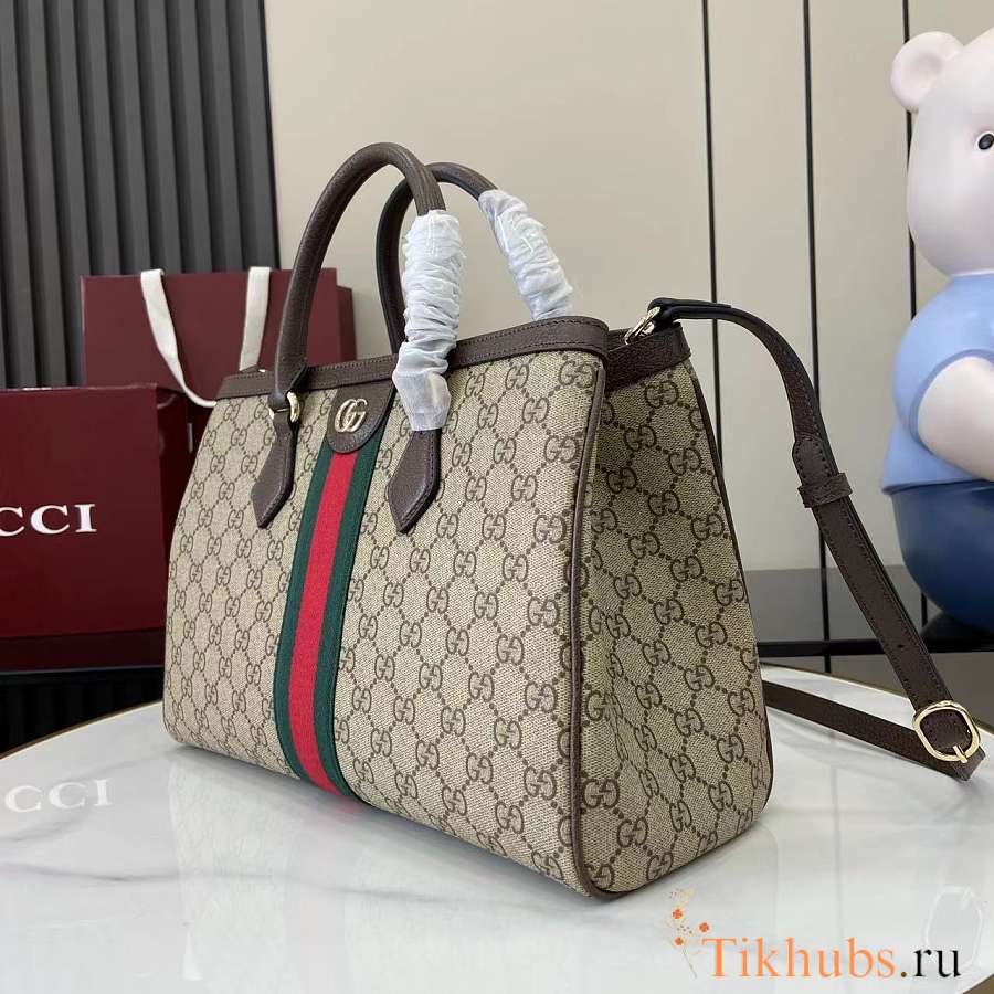 Gucci Ophidia Medium Tote Bag Beige Brown 33.5x25x14cm