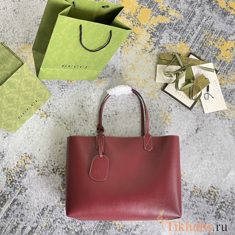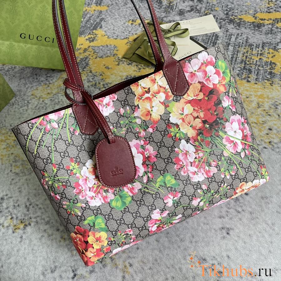 Gucci Reversible GG Supreme Leather Blooms Red Tote 38x28x12cm