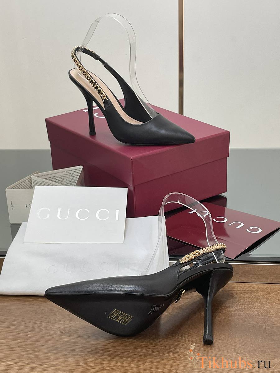Gucci Signoria Slingback Pump Black Leather Heel 10.5cm