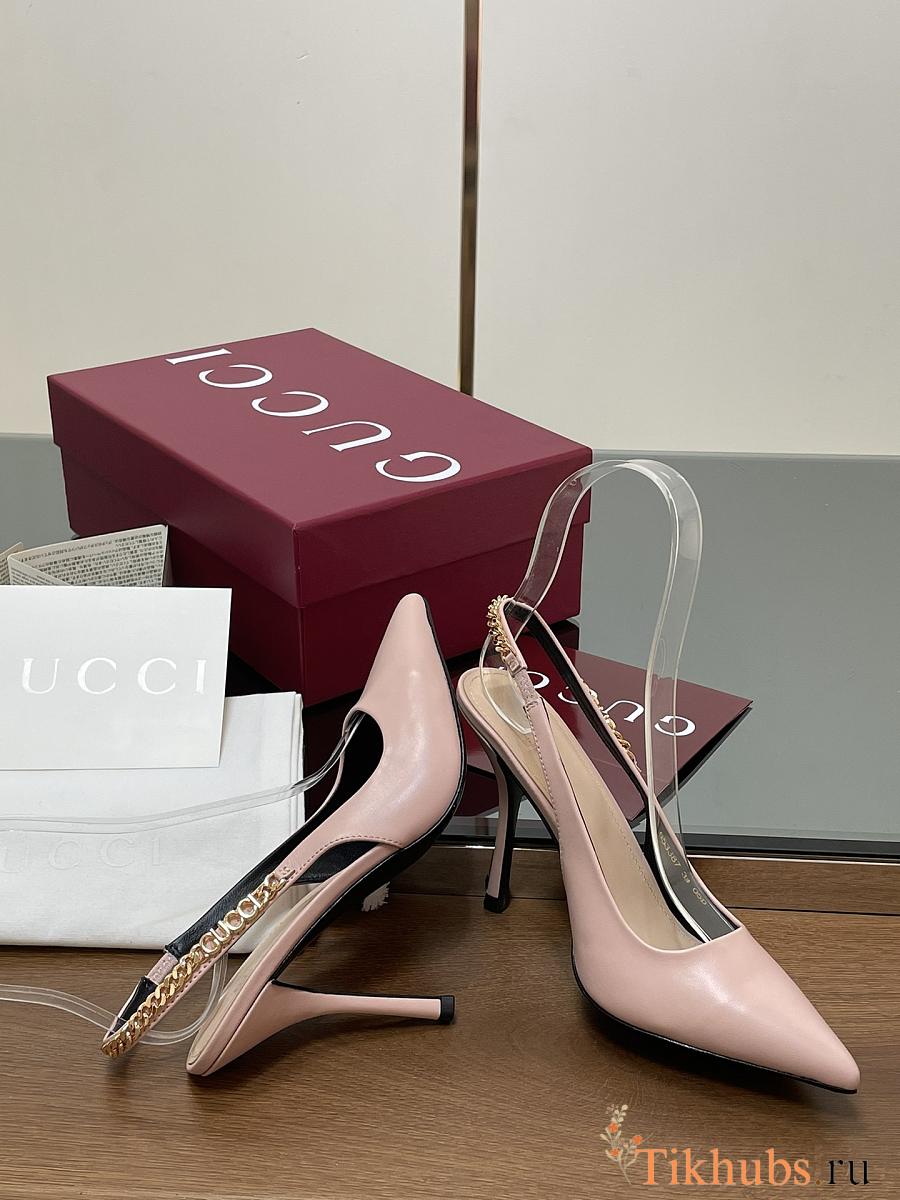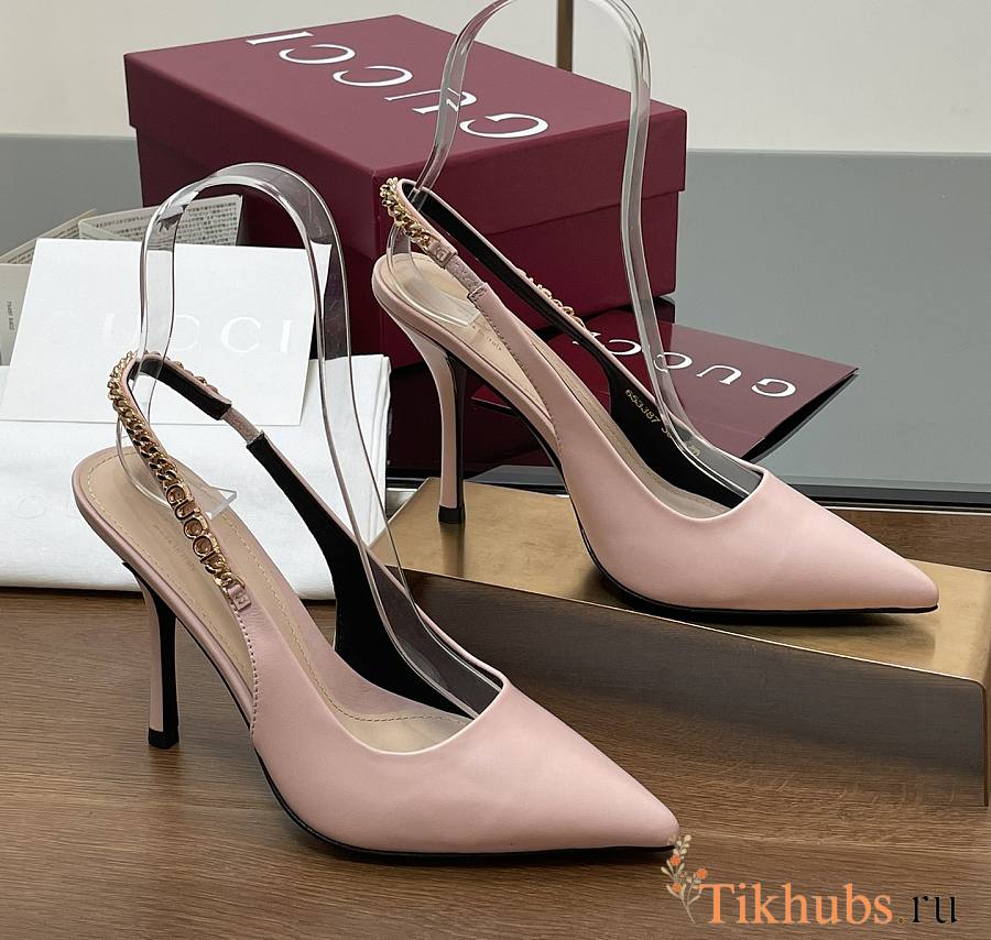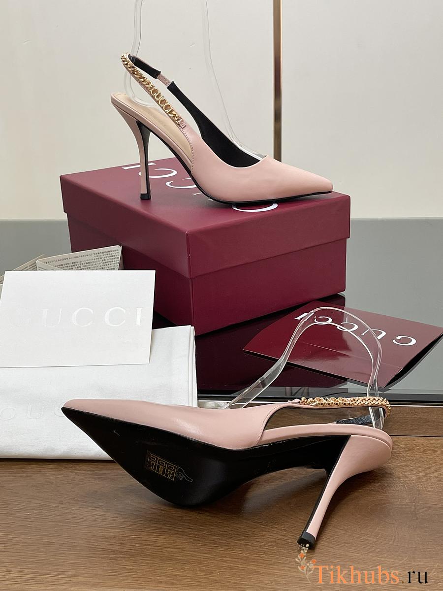 Gucci Signoria Slingback Pump Pink Leather Heel 10.5cm
