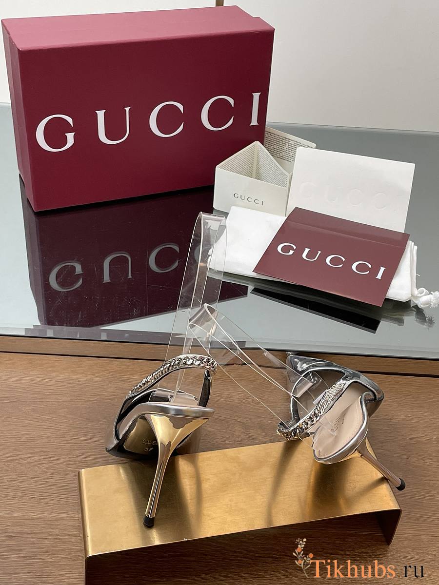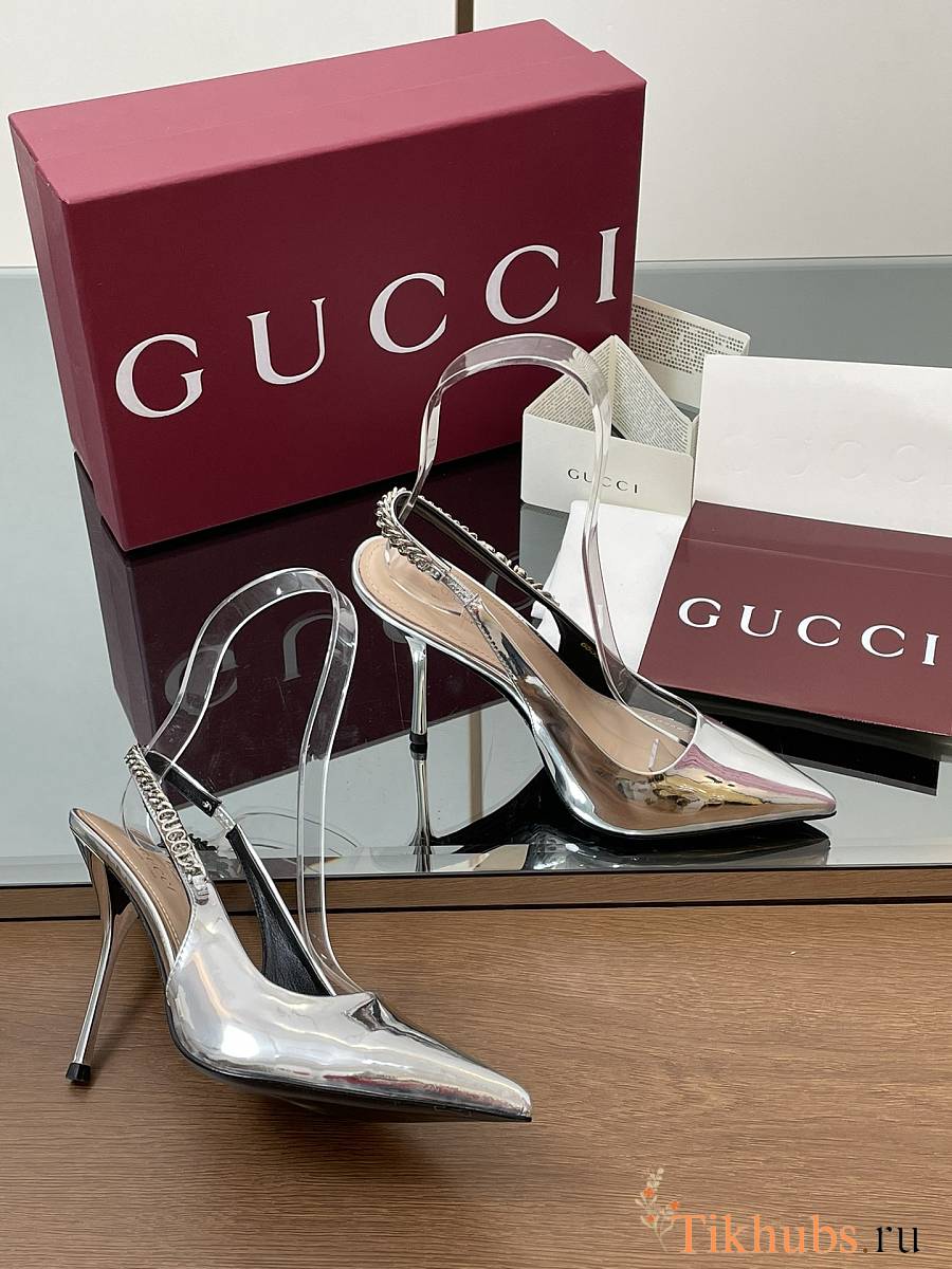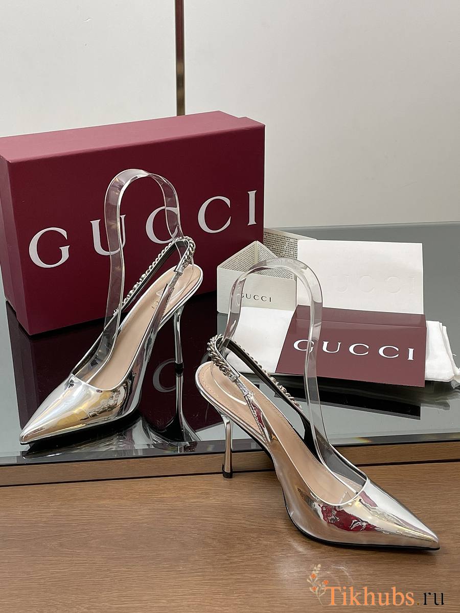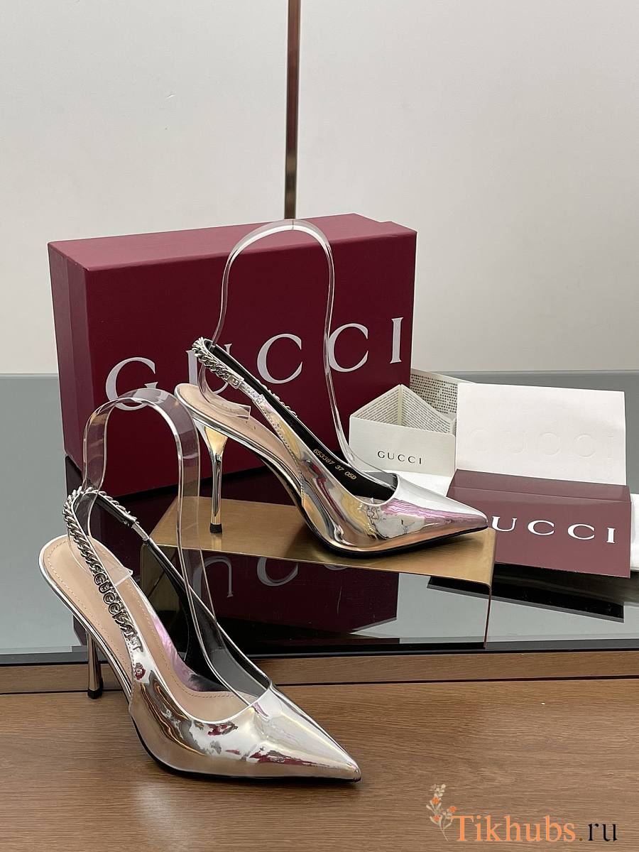 Gucci Signoria Slingback Pump Silver Leather Heel 10.5cm
