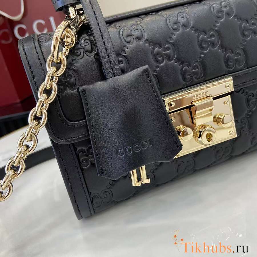 Gucci Small Padlock Top Handle Bag Black 20x13.5x8cm