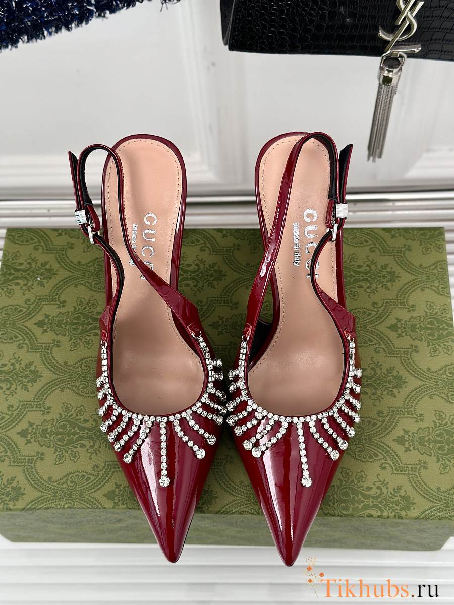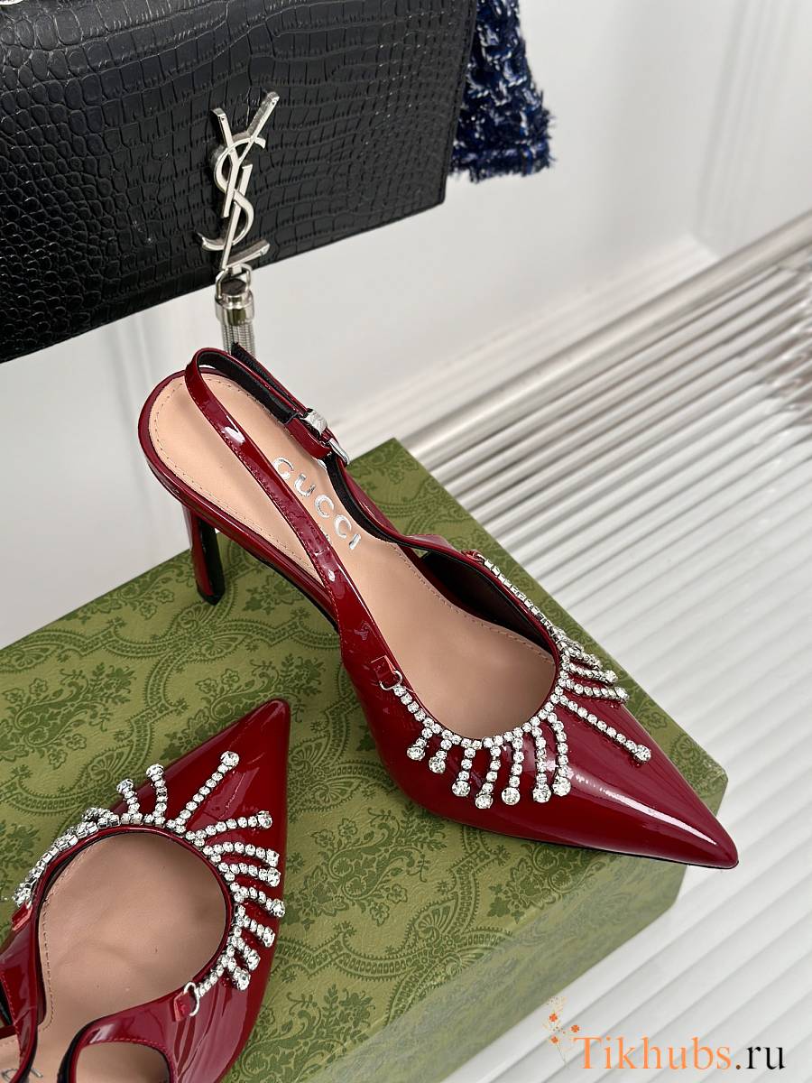 Gucci Women's Pump With Crystal Chain Red 10cm