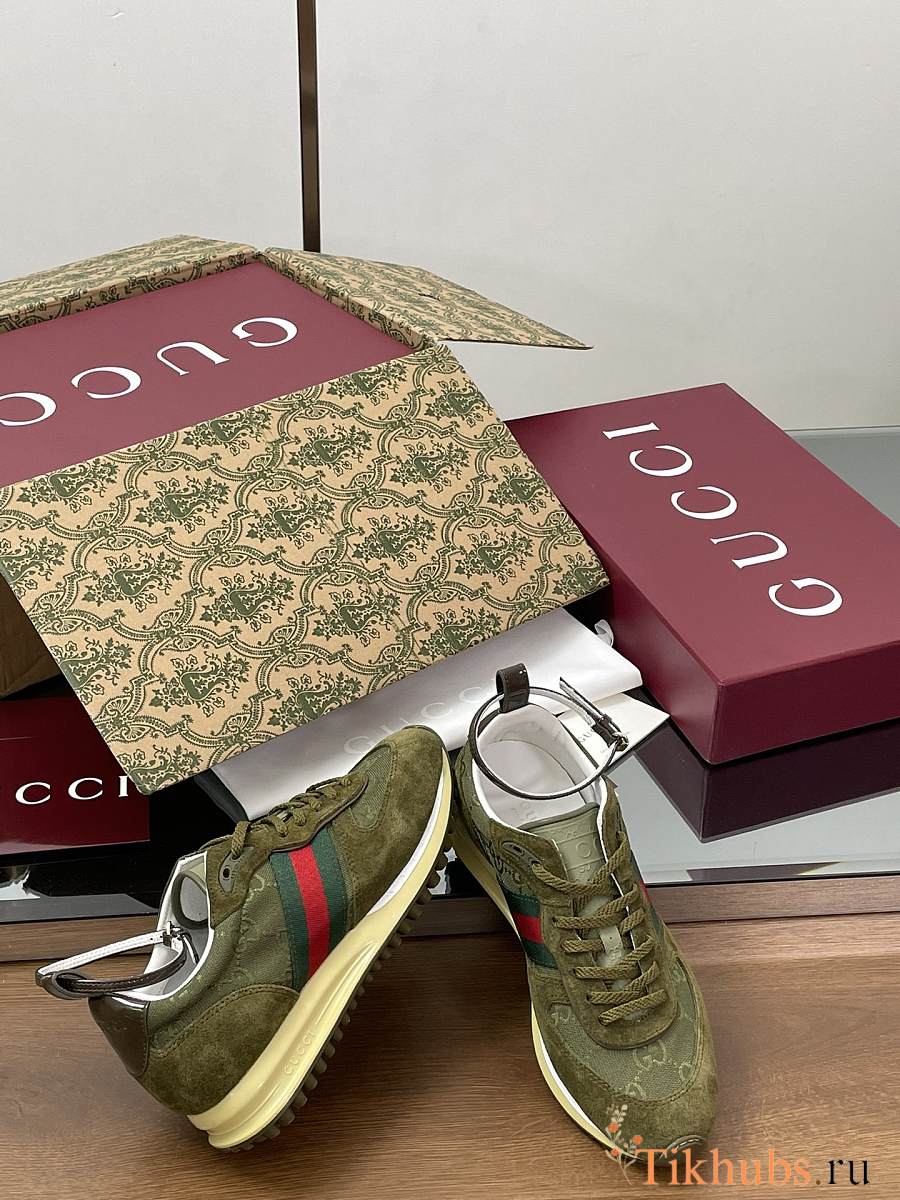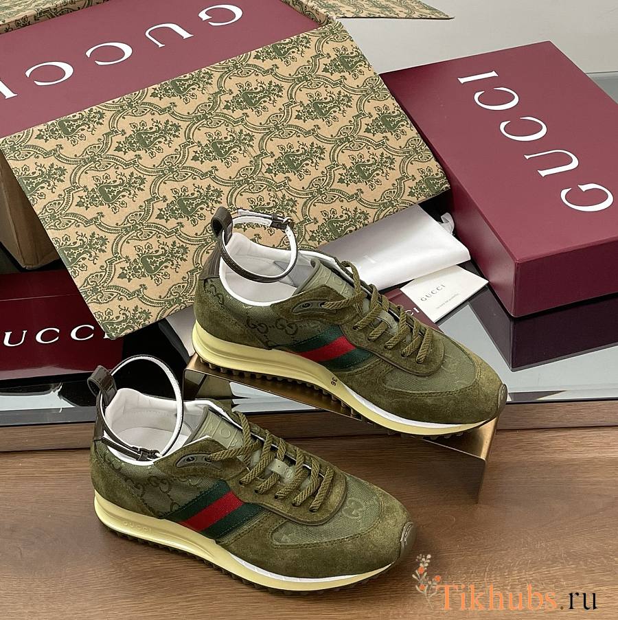 Gucci Women's Re-Motion Trainer Dark Green Suede Sneaker