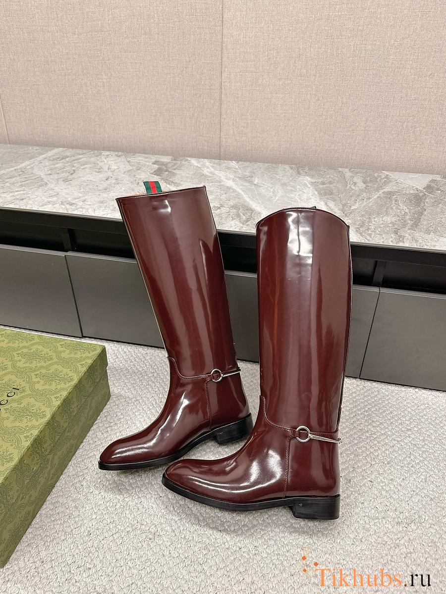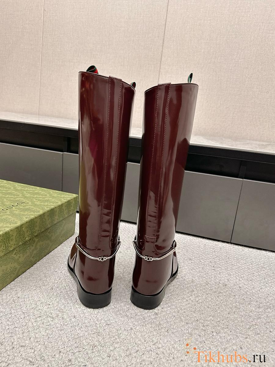 Gucci Women's Slim Horsebit Boot Red Wine