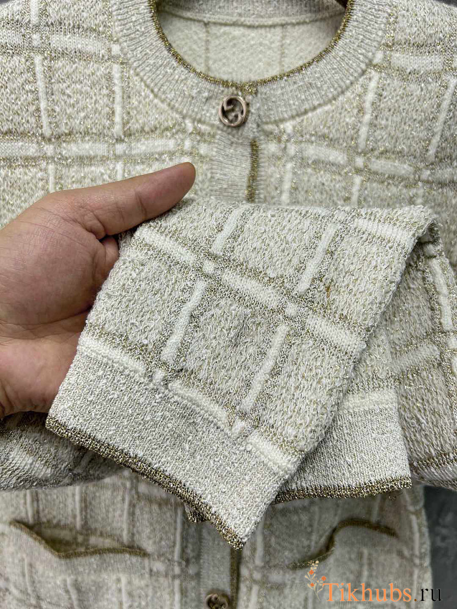 Gucci Wool and Lamé Check Jacquard Cardigan.
