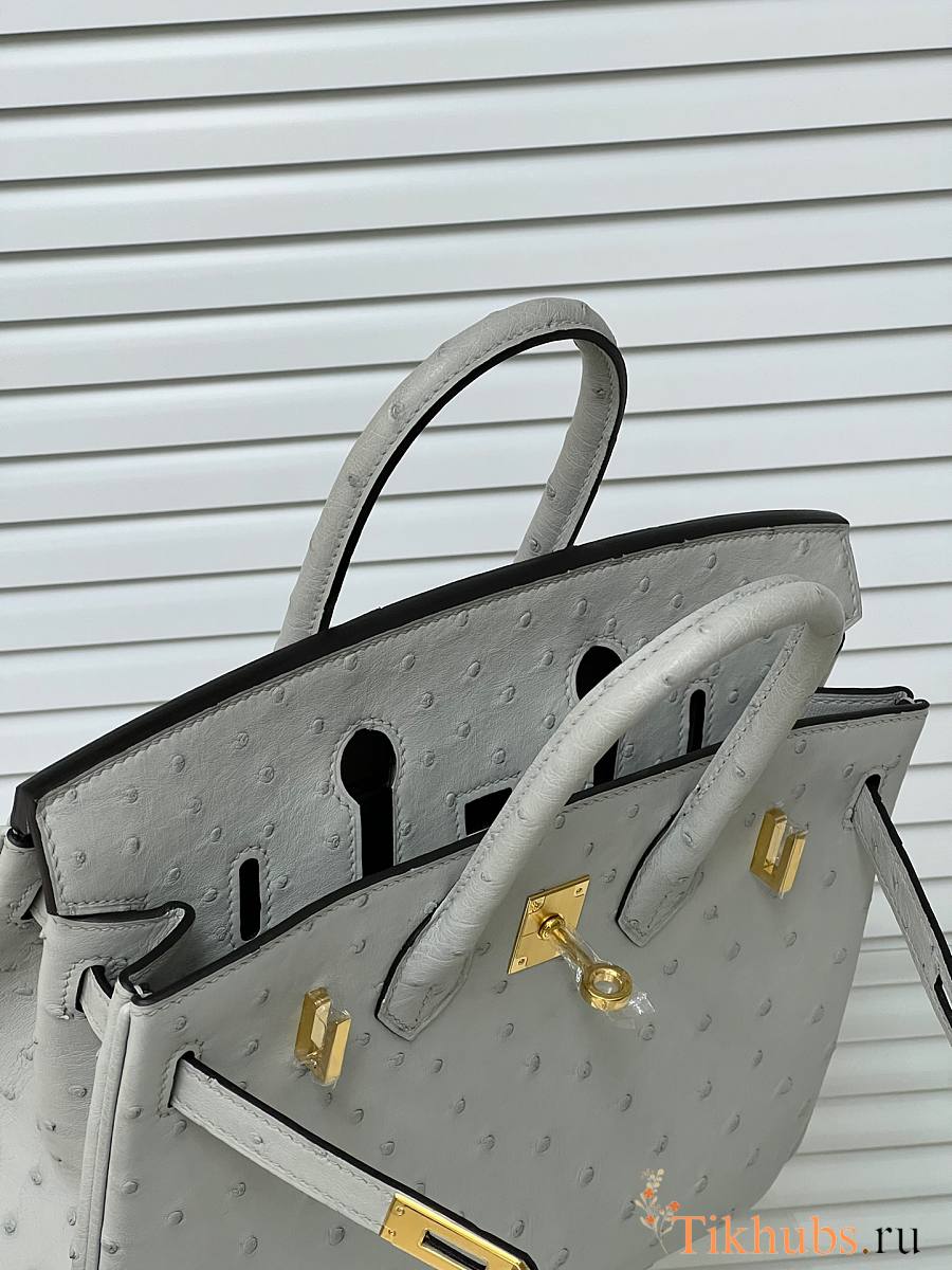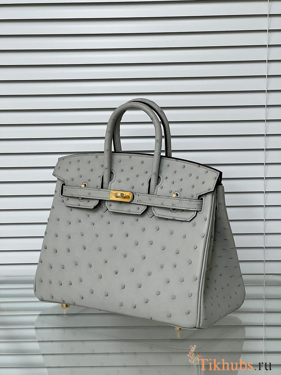 Hermes Birkin 25 Bag Grey Ostrich Gold 25cm