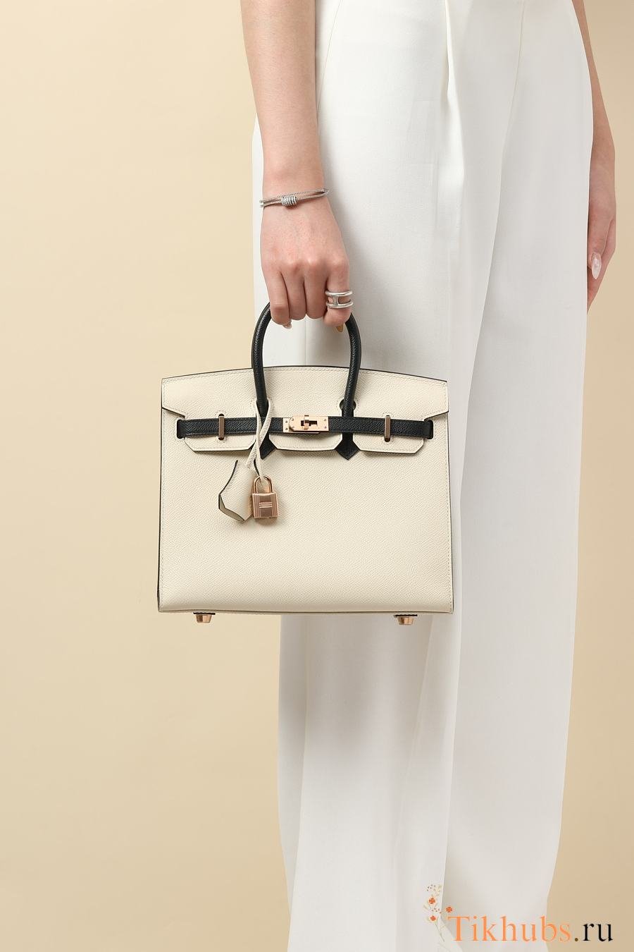Hermes Birkin 25 Bag White Black Epsom Gold 25cm