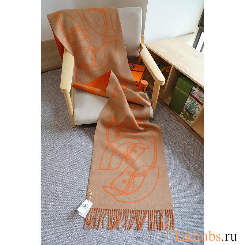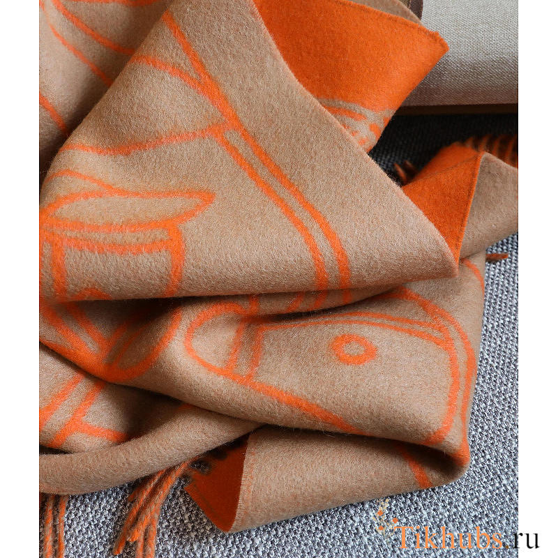 Hermes Cashmere Scarf In Orange/Beige 90x90cm
